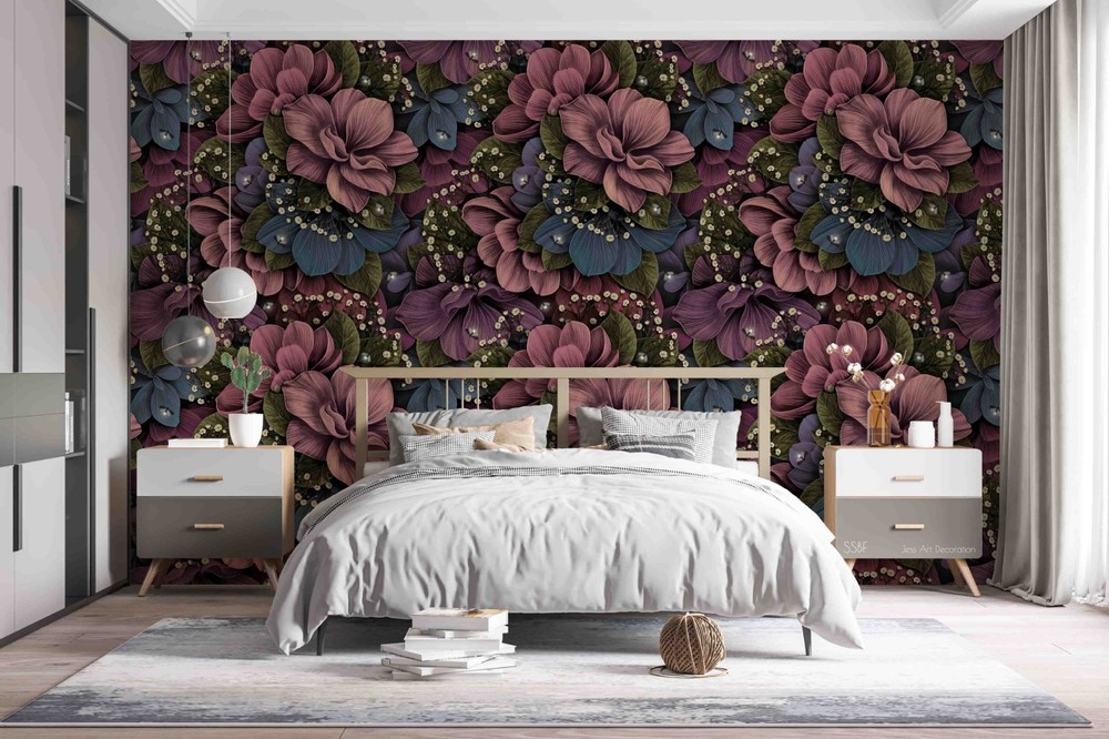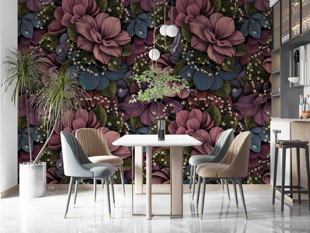 3D Baroque Style Flower Leaves Pattern Wall Murals Wallpaper Murals Wall Sticker