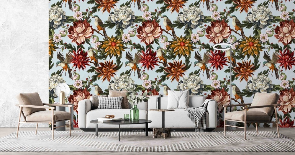 3D Flowers Leaves Watercolor Pattern Wall Murals Wallpaper Murals Wall Sticker