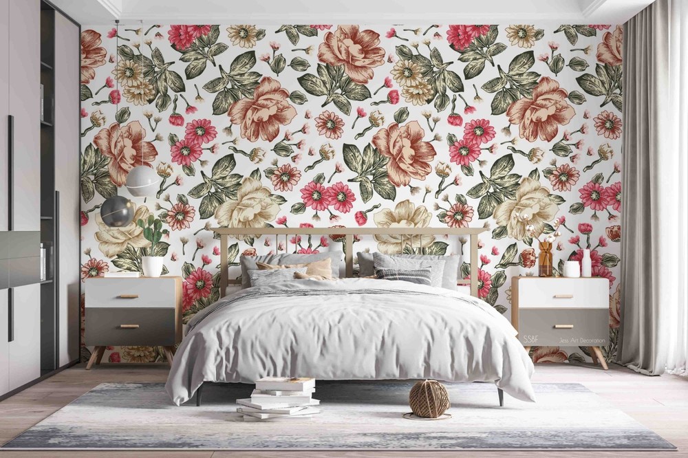 $ 15.013D Baroque Style Flowers Pattern Wall Murals Wallpaper Murals Wall Sticker 32