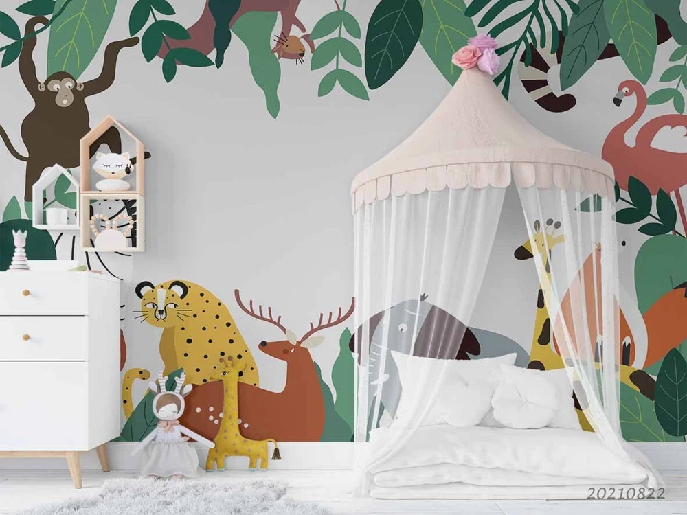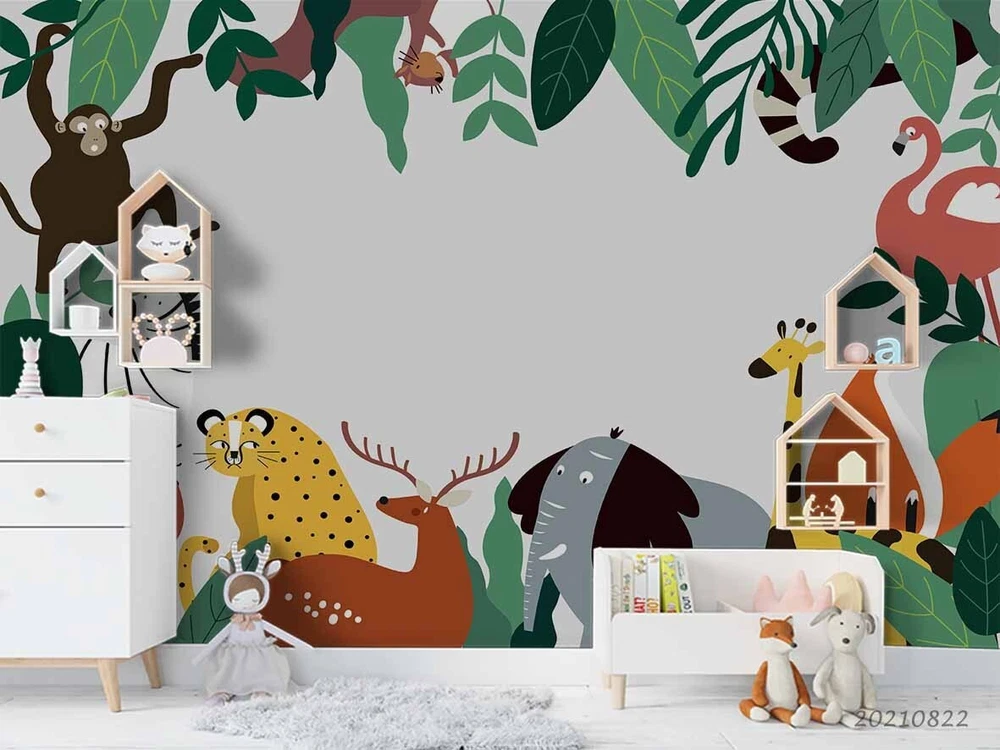 3D Cartoon Forest Animals Kids Wall Murals Wallpaper Murals Wall Sticker 152