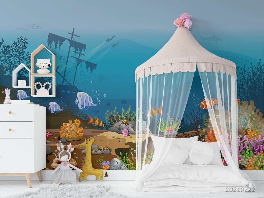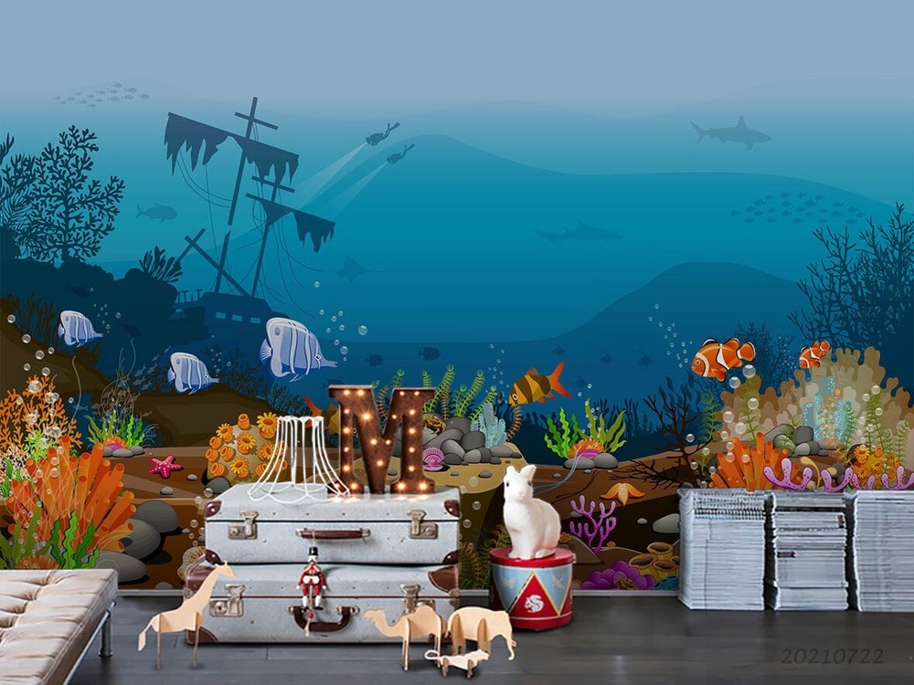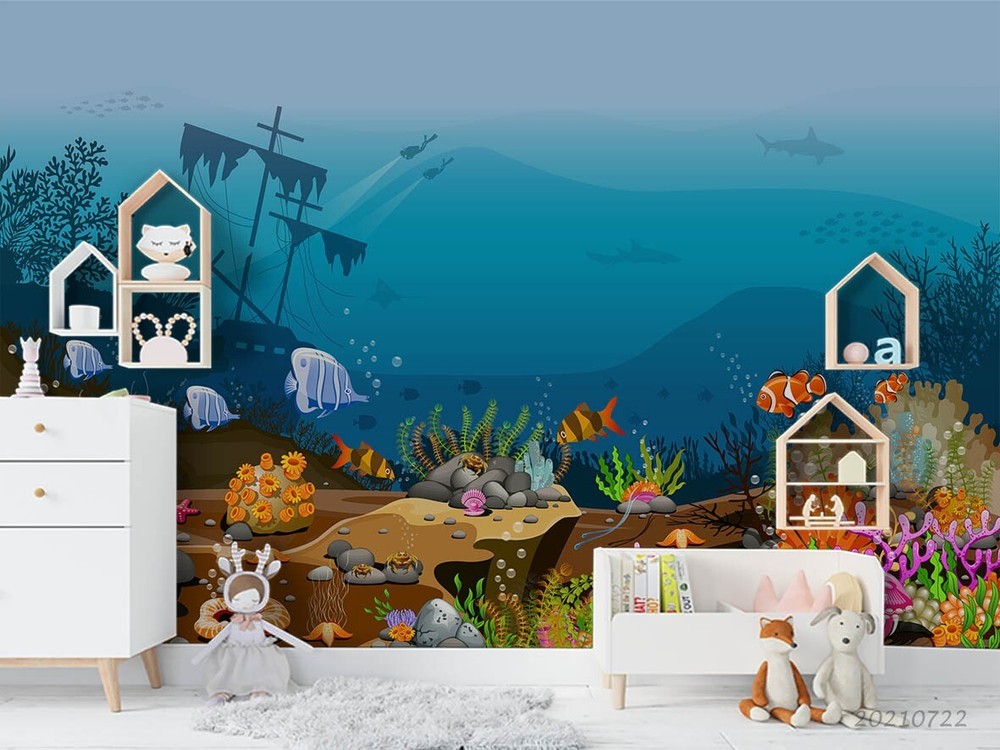 3D Undersea World Rocks Water Plants Wall Murals Wallpaper Murals Wall Sticker