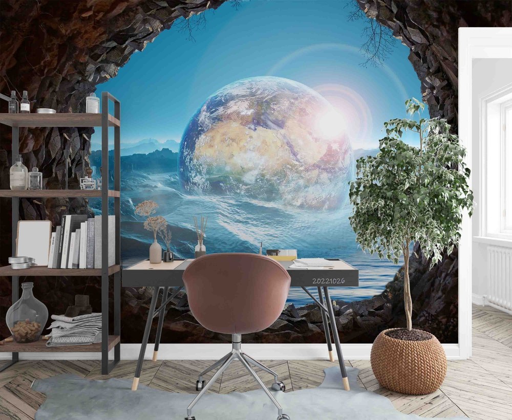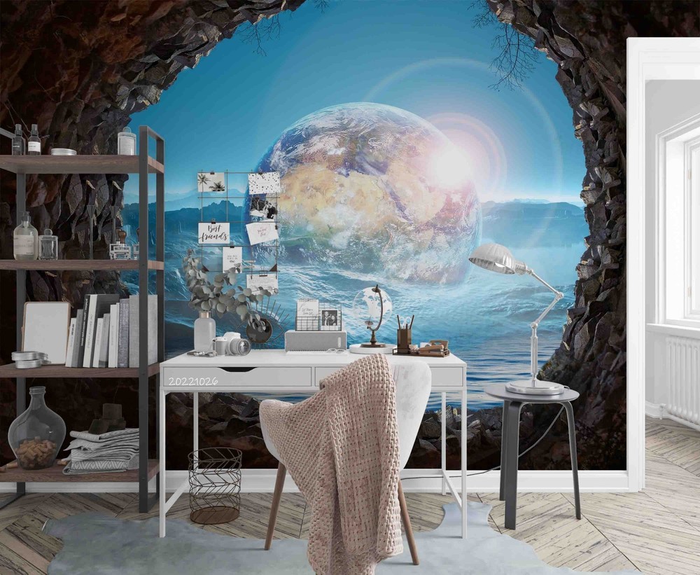 3D Cave Sea Landscape Wall Murals Wallpaper Murals Wall Sticker 3