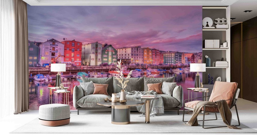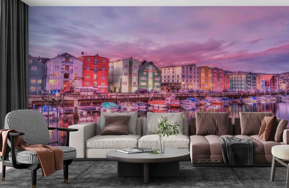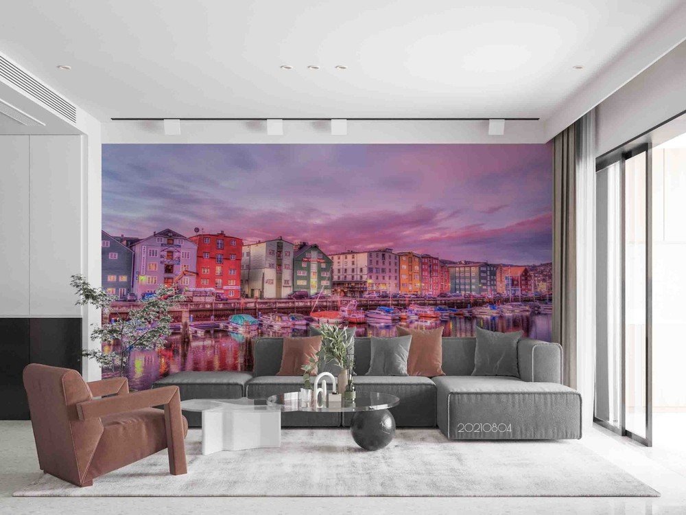 $ 14.13D River City Sky Landscape Wall Murals Wallpaper Murals Wall Sticker