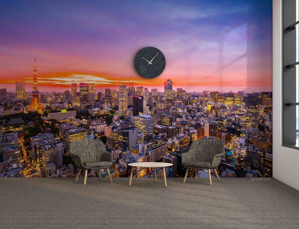 3D City Sky Sunset Landscape Wallpaper Wall Murals Removable Wallpaper 2