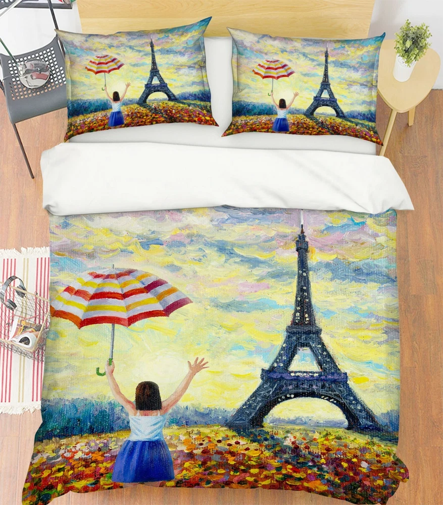 3D Eiffel Tower Flower ZHUA254 Bed Pillowcases Quilt Duvet Cover Set Queen King