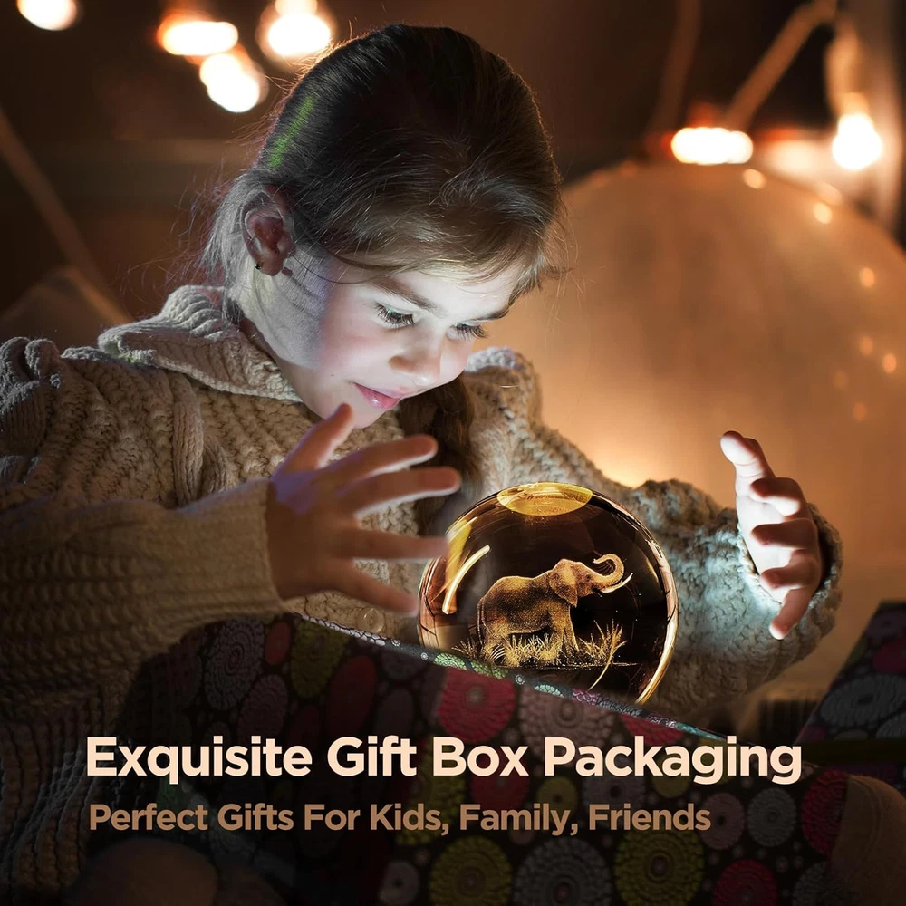 Store New Arrivals Add to Favorite View Feedback Contact 3D Elephant Crystal Ball Night Light Elephant Gifts for Women Upgraded 3.15 Description Light Source Type LED Item model number Large 3.15 Inch Style Art Deco Base Diameter 3.15 Inches Number of Items 1 Power Source Corded Electric Pattern Solid Number of Light Sources 1 Control Method Remote Lighting Method LED Lamp Type LED Cartoon Character 3D Elephant Controller Type Remote Control Room Type all Finish Wooden Bulb Shape Size B9 Brand DCORIUNTG Material Crystal Installation Type Freestanding Finish Type Wooden Specific Uses For Product Home Decor, Gifting, Room Decor Included Components Remote Control Indoor/Outdoor Usage Indoor Water Resistance Level Not Water Resistant Batteries Required? No Item Weight 1.68 pounds Connectivity Technology USB Size large 3.15“ Special Features Large 3.15 Inch Glass Ball Lamp with 16 Colors Special Feature Large 3.15 Inch Glass Ball Lamp with 16 Colors Shade Height 3.15 Inches Shade Color Multicolor Mounting Type Tabletop Color Elephant Wattage 7 watts Is Cordless? No Base Material Wood Is Waterproof false Shape cube Voltage 1.2E+2 Volts Recommended Uses For Product Decoration Shade Material Glass, Wood Manufacturer DCORIUNTG Product Dimensions 3.15"D x 3.15"W x 3.15"H Switch Type Remote 🐘🔮【3.15 Inch Large Size & Value Pack】1 x Elephant Crystal Ball ( 80mm/ 3.15inch ), 1 x LED Light Base, 1 x Remote Control, 1 x USB Cable, 1 x Beautiful Gift Box, 1 x Microfibre Cleaning Cloth (easy to clean and wipe). 🐘🔮【16 Colors to Brighten a Nice Night】Our 3D Elephant Crystal Ball Lamp have 16 colors and 4 modes. You can use the remote control to choose the color of your favorite lights and adjust the intensity of the lights. You can easily control this night light even when you are lying in bed. (Please Note: it need to connect power via USB cable.) 🐘🔮【Premium K9 Crystal & 3D Laser Engraving】The elephant glass lamp is made of high-quality K9 crystal materials, and the interior images are carved by advanced 3D laser engraving technology, it's vivid and clear. Even after a lifetime of use, crystals never lose their original shine. When you rotate the crystal ball, the built-in colorful LED light will project a stunning luminous aperture on the ceiling. 🐘🔮【Beautiful Elephant Home Decor】The elephant is a cherished symbol of good luck, power and wisdom. The inside of the crystal clear ball is engraved with exquisite and clear 3D patterns, under the illumination of soft light, it creates a warm and dreamy atmosphere, bringing a romantic artistic sense to your home. It is both a night light and a very beautiful decoration. Suitable for bedroom, living room, children's room, study, hallway or any style of space. 🎁【Ideal Gift】Great gift for women, men, kids, friends, girls, boys and families at any festival. Like birthday gifts, retirement gifts, Valentine's Day, wedding gifts, anniversary gifts, Christmas gifts, holiday gifts, Easter gifts, mother’s day gifts, graduation gifts, Father's Day gifts, Thanksgiving gifts, sympathy gifts, housewarming, and all seasonal gifts. ✅3D Elephant Crystal Ball Night Light with 16 Colors -- Elephants are one of the oldest symbols of good luck, strength, vitality and protection. This elephant crystal lamp as are minder that you are strong, beautiful and you have the power to conquer. ✨Newest Version 3D Creative Lamp Is a Combination Of Art and Technology That Always Illuminates The Room and Your Life. Best Gift for Birthday Christmas, Home Office Decor 💡Specification: -Crystal Material: Upgraded K9 -Base Material: Eco-friendly beech wood -Crystal Size: 80x80x80mm/ (3.15x3.15x3.15in) -Crystal Weight:0.65kg (1.43 Lbs) -Light Color: 16 Colors+4 Modes 💡Package Include: 1 x Crystal Ball 1 x Wooden Base 1 x USB Charging Cable 1 x Remote Control 1 x Microfibre Cleaning Cloth 1 x Gift Box ✨High-Quality & Upgraded Material Made of quality k9 crystal, it is very clear to show 3D elephant image which is engraved by advanced 3D laser technology. The 3D patterns is highly clear and durable for a life use, crystal image will never lose luster. ✨Special & Unique 16 Colors These 3D Elephant K9 Crystal Ball Lamp have 16 colors and 4 modes. You can use the remote control to choose the color of your favorite lights and adjust the intensity of the lights. Flash, strobe, fade and smooth four modes,can also always light a color, soft and not glare, protect your eyes. ✨USB Powered, Power Saving 3D night light crystal lamp comes with wooden base with USB cable line(no adapter), connect to such as computers, portable charger,output charger/adapter,etc.). Long life and power saving, can be used for many years. 🎁Perfect Gifts for Any Festival In order to show the greatest sincerity, a fantastic crystal ball and a luxurious base made of pure wood are matched with gift box packaging. It will make the best impression as a Christmas gift, mother’s day gifts, graduation gifts, ABOUT US We offer the best prices around on high quality products. Our E-store includes media such as books, movies, music and games while offering electronics, toys, sporting apparel, clothing, tools, general home, garden items and more. SHIPPING We are always working hard to ensure your package arrives as soon as possible. Please understand that some factors like weather, high postal traffic, and the performance of shipping companies are outside of our control. We offer free shipping to the lower 48 states and ship within 2 business days of payment, usually sooner. We do not accept P.O. Boxes. Please provide a physical address. RETURNS We offer a 30-Day Return Policy on items which you are not completely satisfied with. You have the option for a full-refund or an exchange of the item. No returns are available on items shipped outside of the USA. PAYMENT We accept PayPal. CONTACT US This page content is yet to come Please ad us to your favorite seller and visit again la