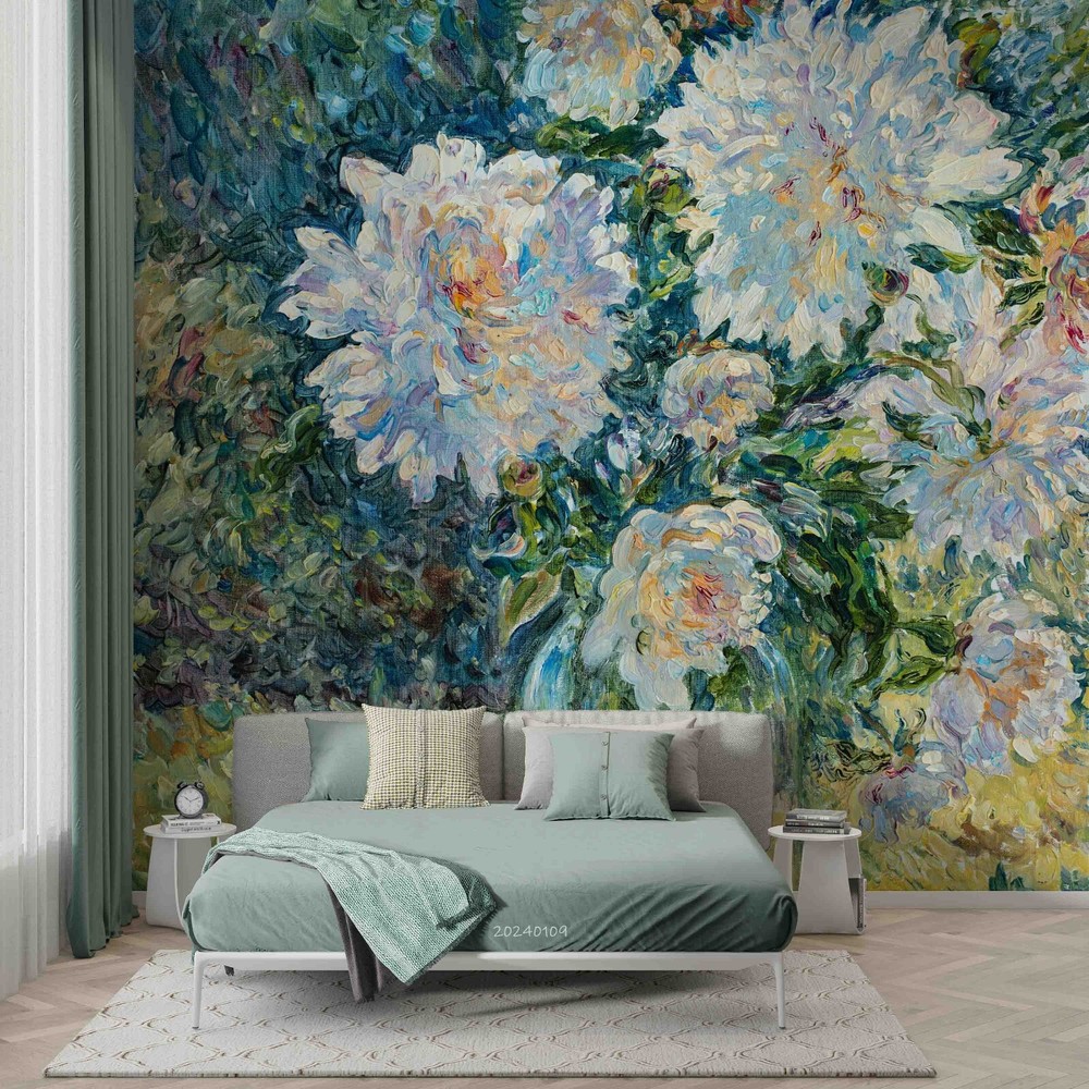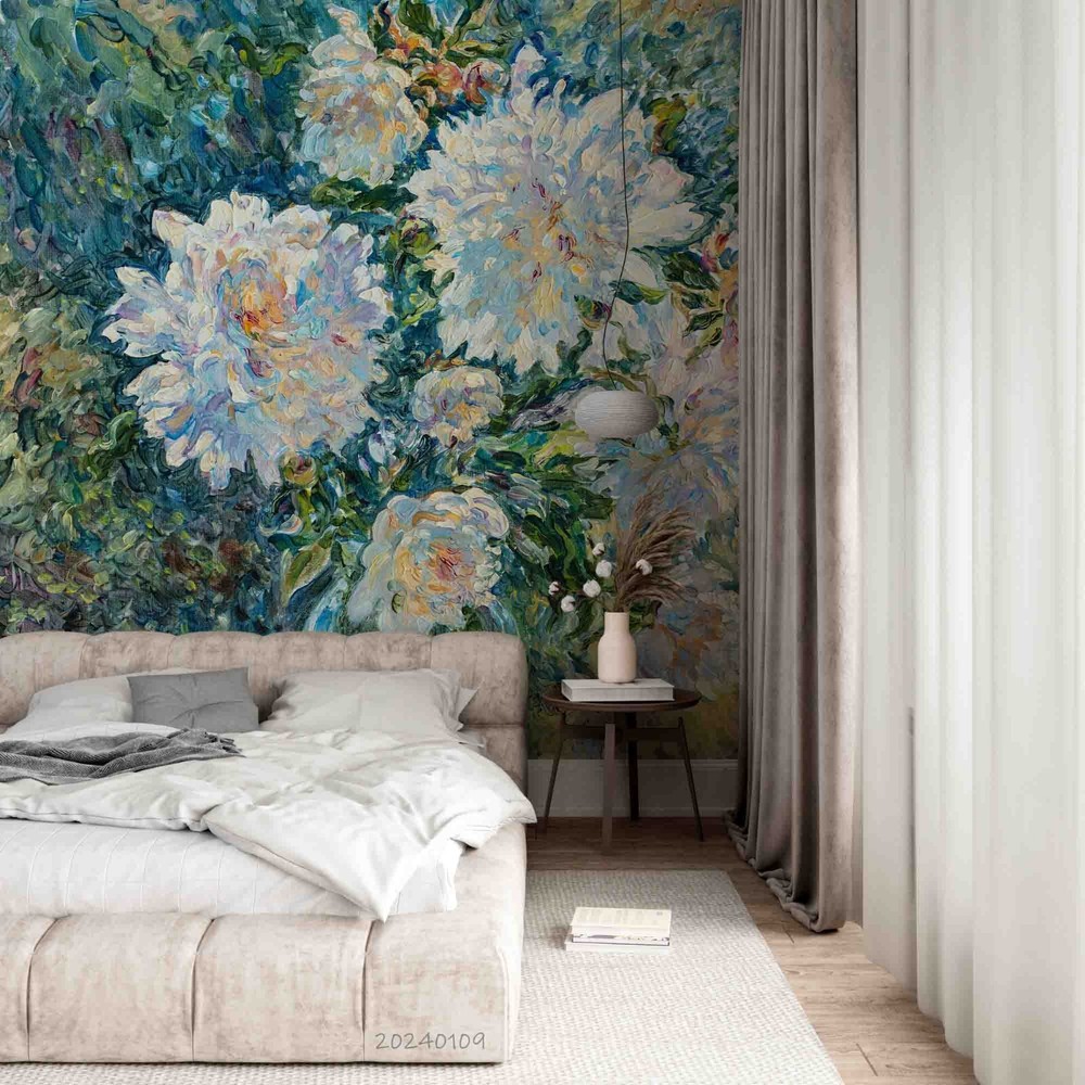 3D Floral Oil Painting Wallpaper Mural Peel and Stick Wall Sticker