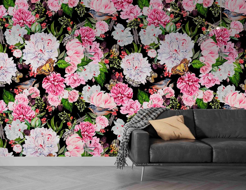 $ 14.753D Pink Peony Plant Closeup Wall Murals Wallpaper Murals Wall Sticker