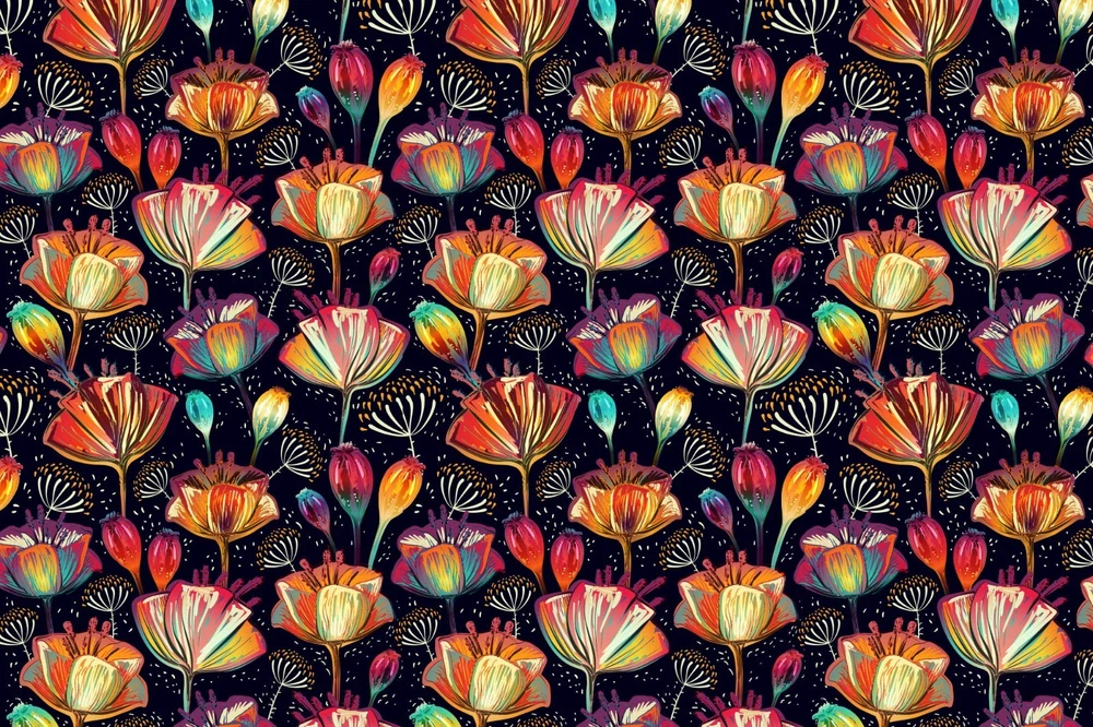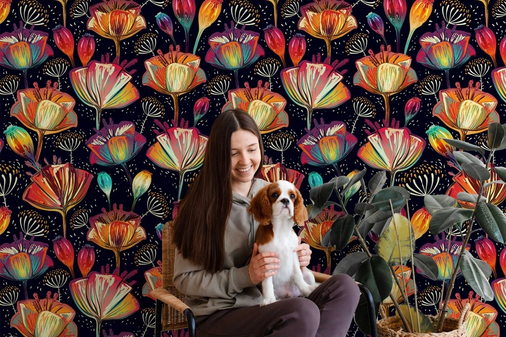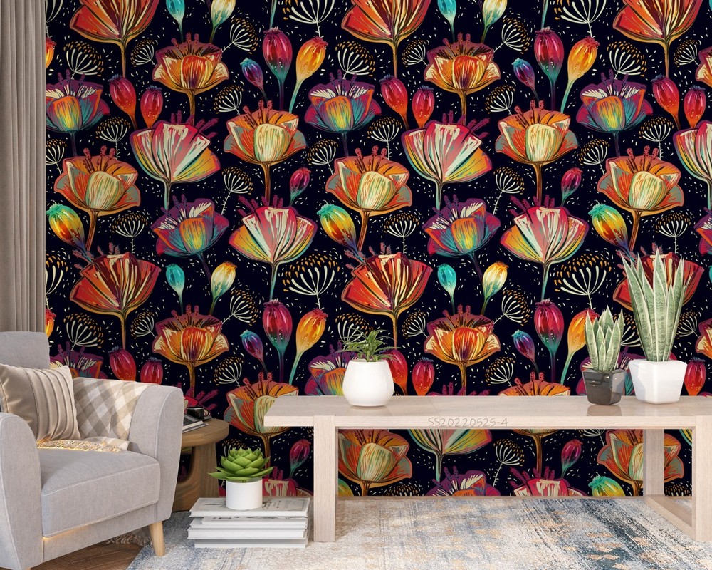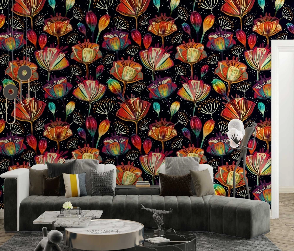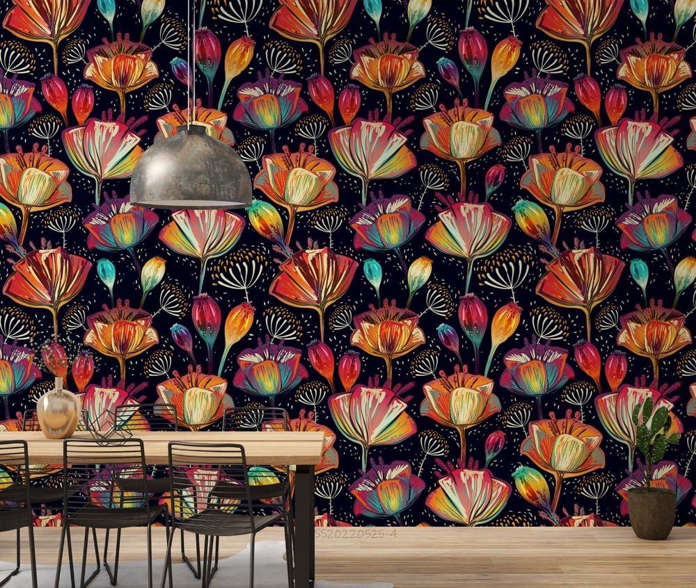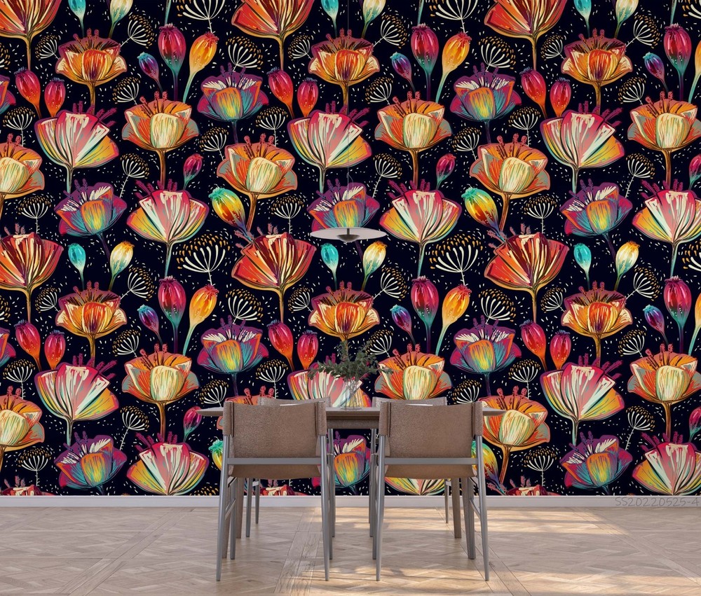 3D Hand Drawn Flower Pattern Wall Murals Wallpaper Murals Wall Sticker