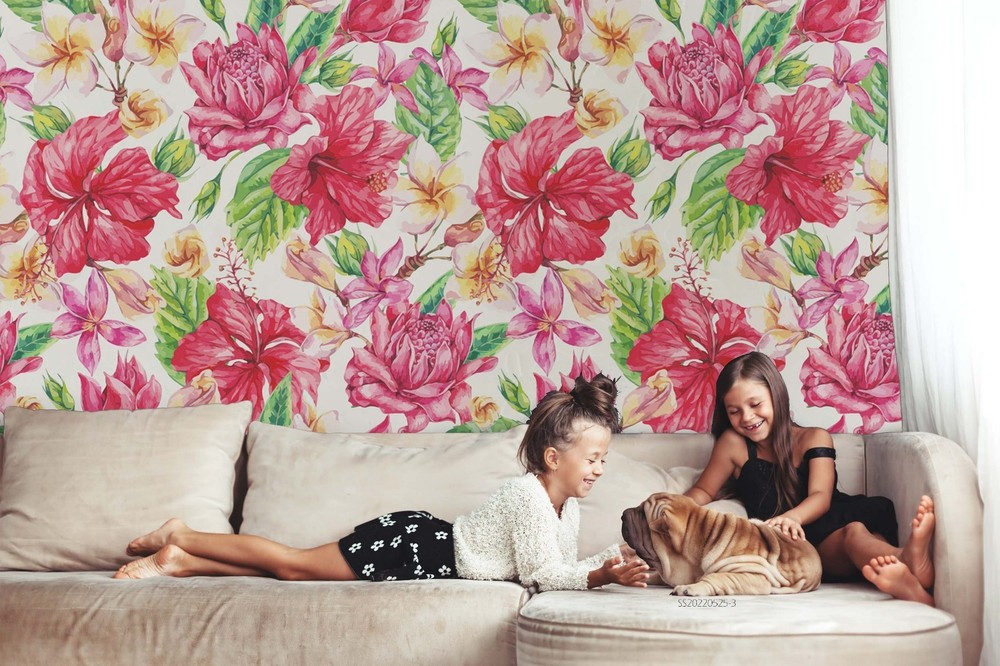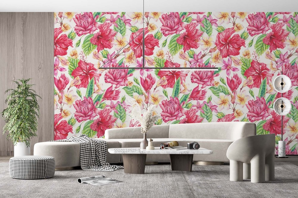 3D Hand Drawn Flowers Pattern Wall Murals Wallpaper Murals Wall Sticker