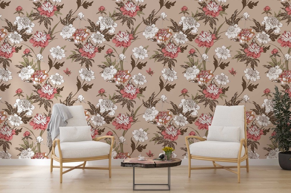 $ 14.753D Red Flowers Flora Pattern Wall Murals Wallpaper Murals Wall Sticker