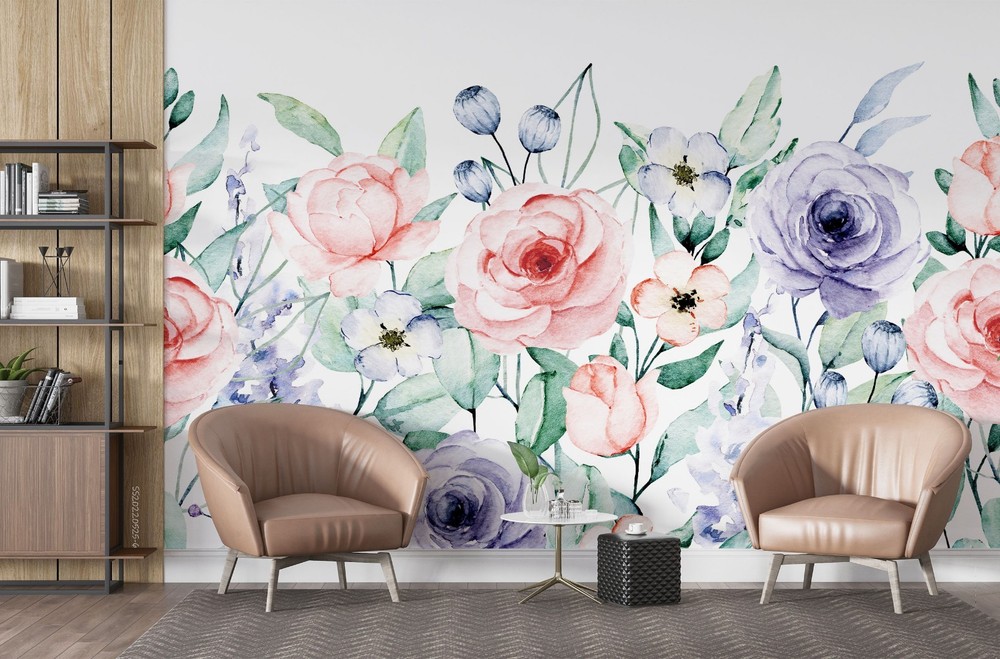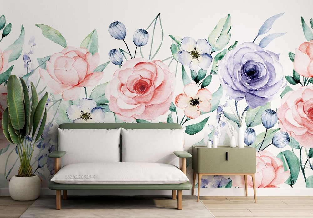 $ 15.013D Flowers Flora Watercolor Pattern Wall Murals Wallpaper Murals Wall Sticker