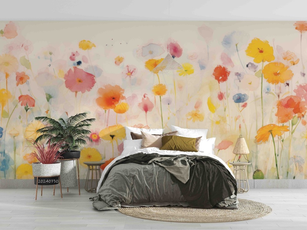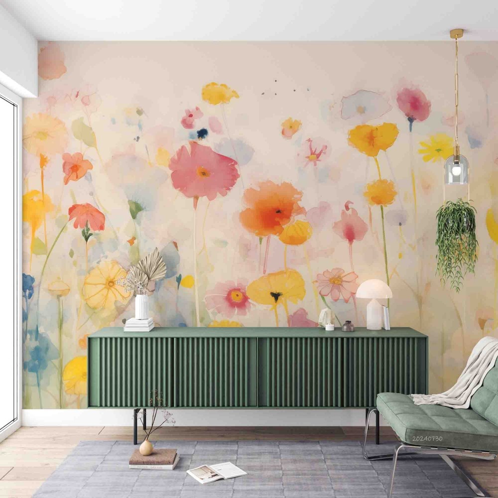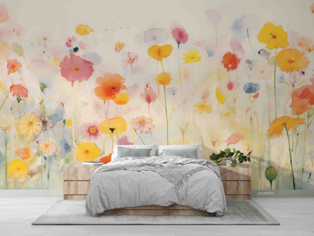 3D Flowers Butterfly Watercolor Wall Murals Wallpaper Murals Wall Sticker