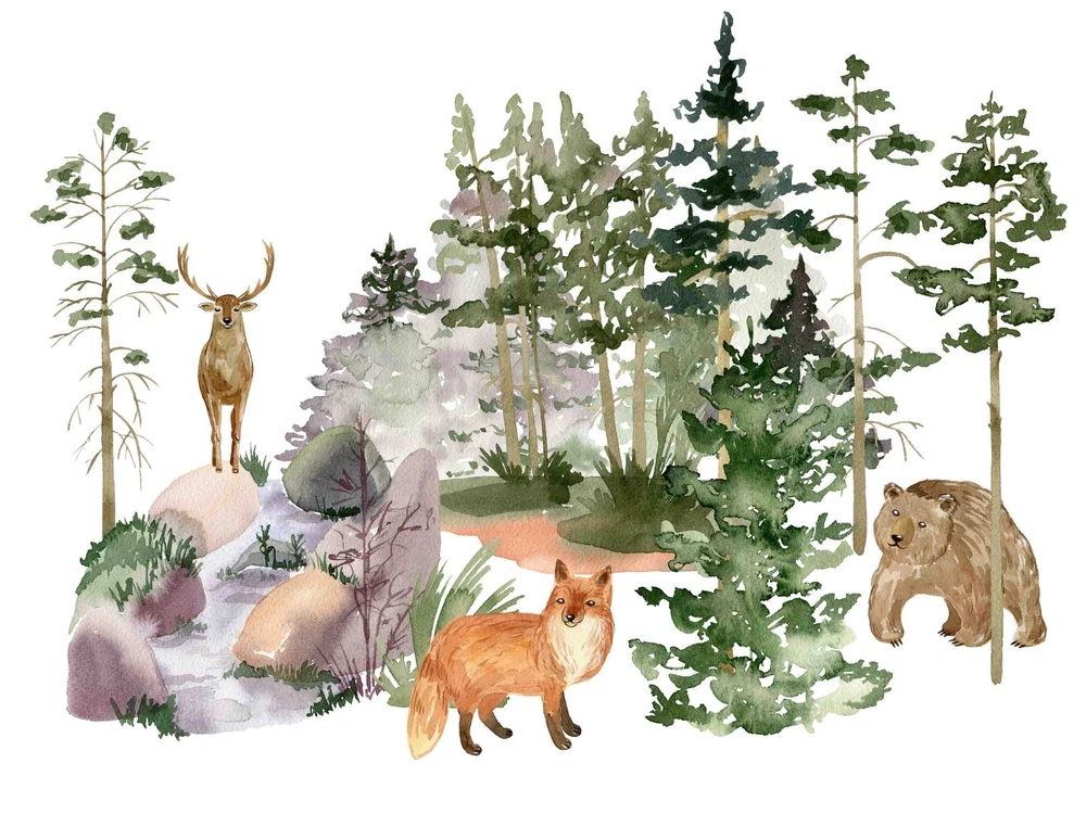 3D Forest Deer Fox Bear Watercolor Wall Murals Wallpaper Murals Wall Sticker 2