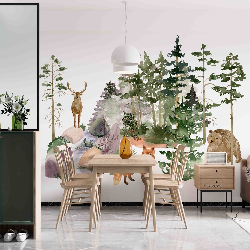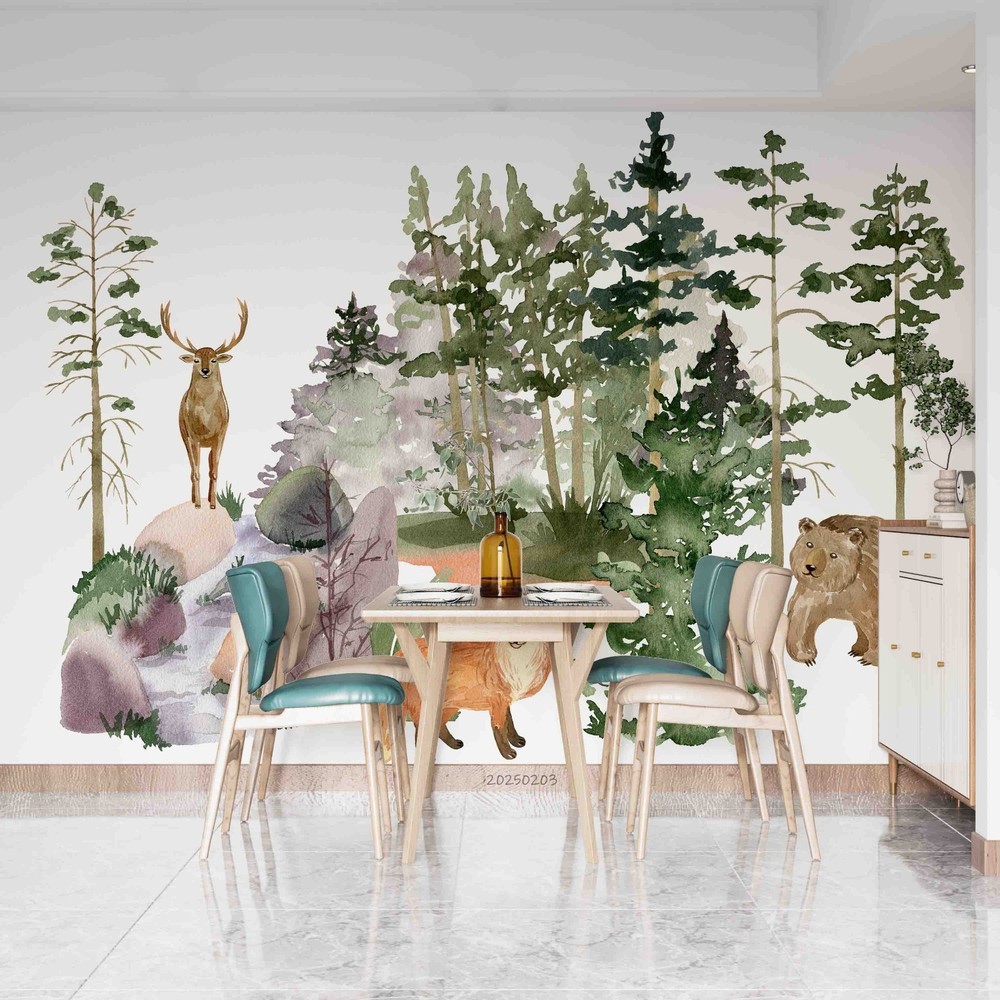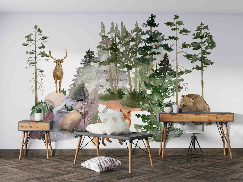 $ 15.013D Forest Deer Fox Watercolor Pattern Wall Murals Wallpaper Murals Wall Sticker