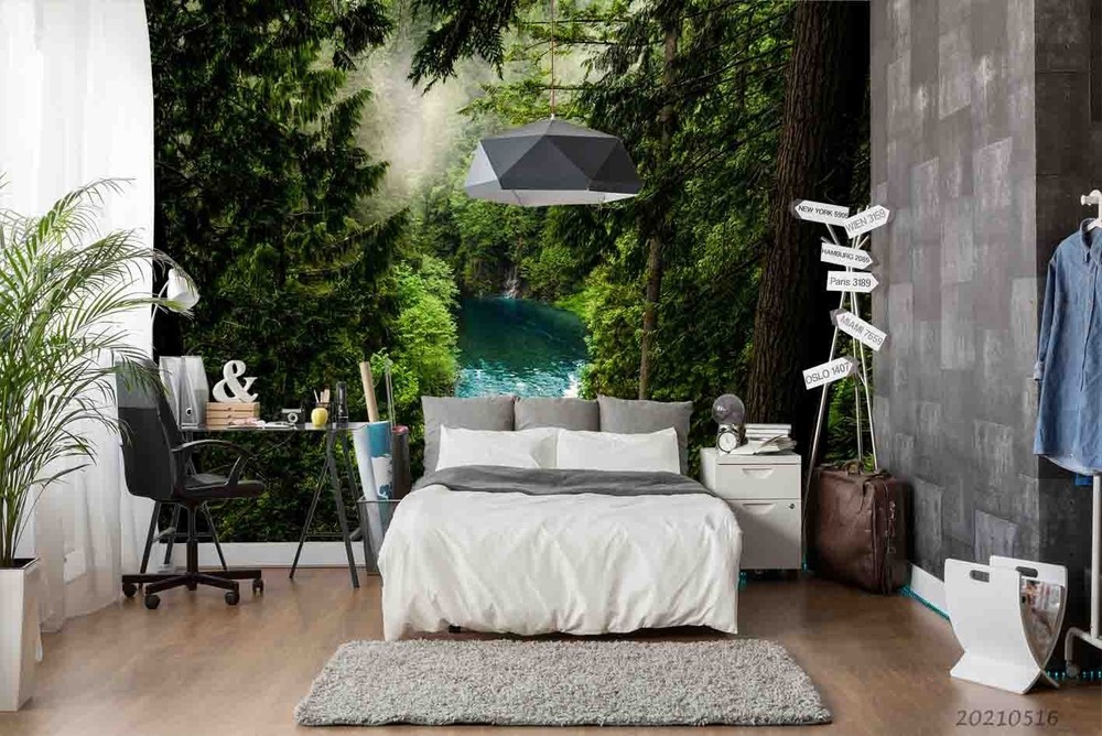 $ 14.143D Mountain Forest Lake Landscape Wall Murals Wallpaper Murals Wall Sticker