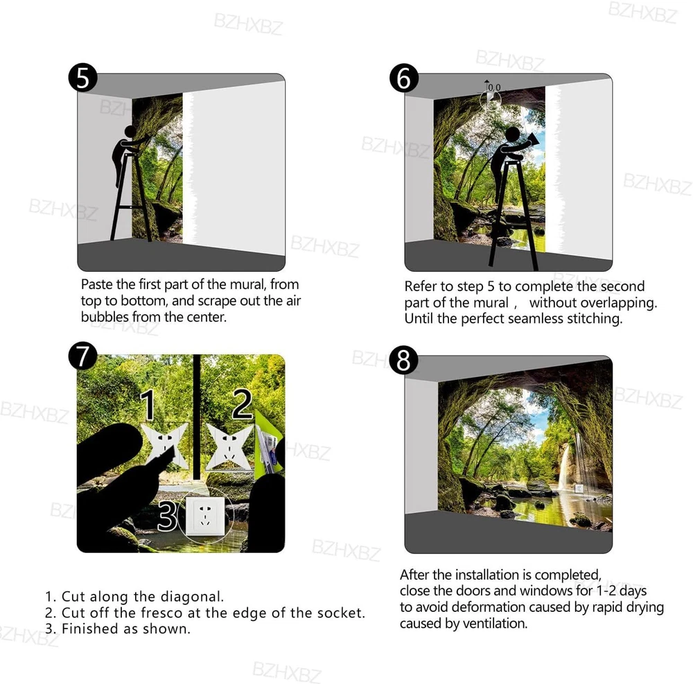 Beautiful Nature Wallpaper Forest Landscapes 3D Space cave 91"x65", B06 Product Details Material: Fabric Color: B06 Brand: BZHXBZ Style: 3d wallpaper Item Weight: 2.1 Pounds Product Dimensions: 91"L x 65"W Coverage: Large Pattern match: Straight Match Theme: Landscapes Is Stain Resistant: Yes Room Type: Bedroom, Living Room Unit Count: 41.07 Square Feet Manufacturer: BZHXBZ Installation Type: Non-Pasted Item Weight: 2.1 pounds Item model number: BZHXBZ-01 This mural is It's not Peel and Stick . Additional Purchase required ( thick wallpaper adhesive ) please Check if is the product you need . thanks. size : 91"x65" divided into 22.83"x65"x4 sections Our mural material belongs to fabric, which is different from ordinary wallpaper,It is currently (China) the most popular high-end decorative material. Great thick quality material: Bright Color, Odor Free, Water Resistant, Stain Resistant, Colorfast, Easy Care, Super Durable and Easy to Clean. It's easy to install: at the bottom of each mural we have a numbered sequence, You can refer to the instructions we provided and the main picture 6-7,just match the numbers and you'll be amazed! Personalized wallpaper: can be posted in rooms, living rooms and bedrooms. studio/office,TV background wall, sofa background wall. Beautiful BZHXBZ murals, art decor walls are everywhere.