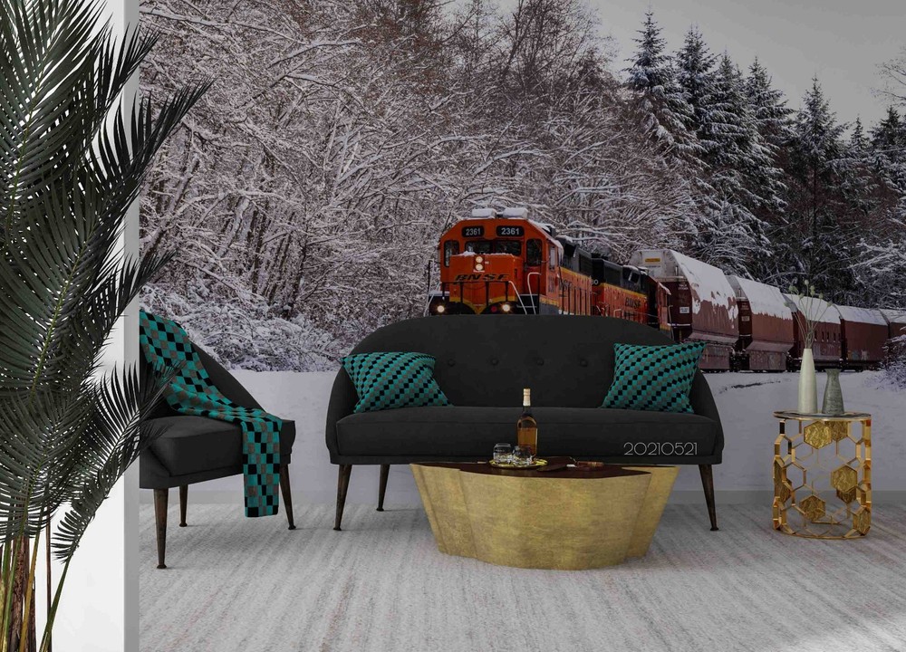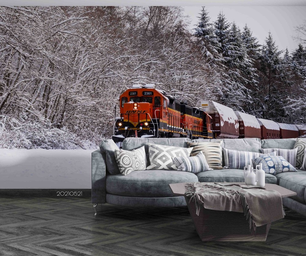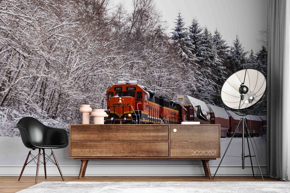$ 15.013D Mountains Train Railway Landscape Wall Murals Wallpaper Murals Wall Sticker