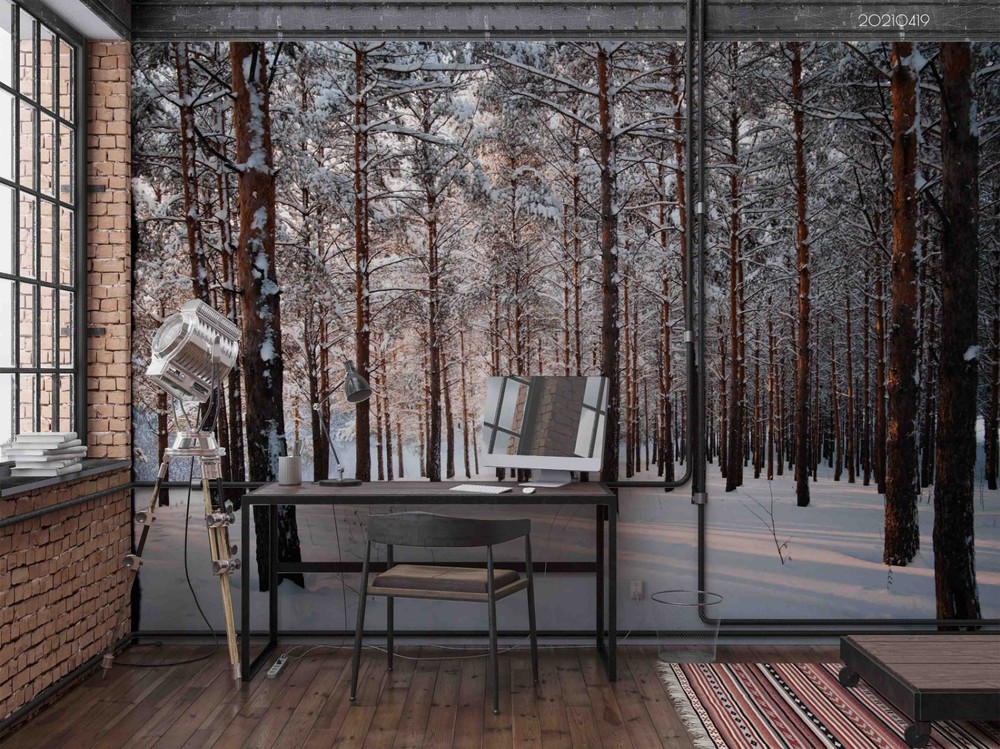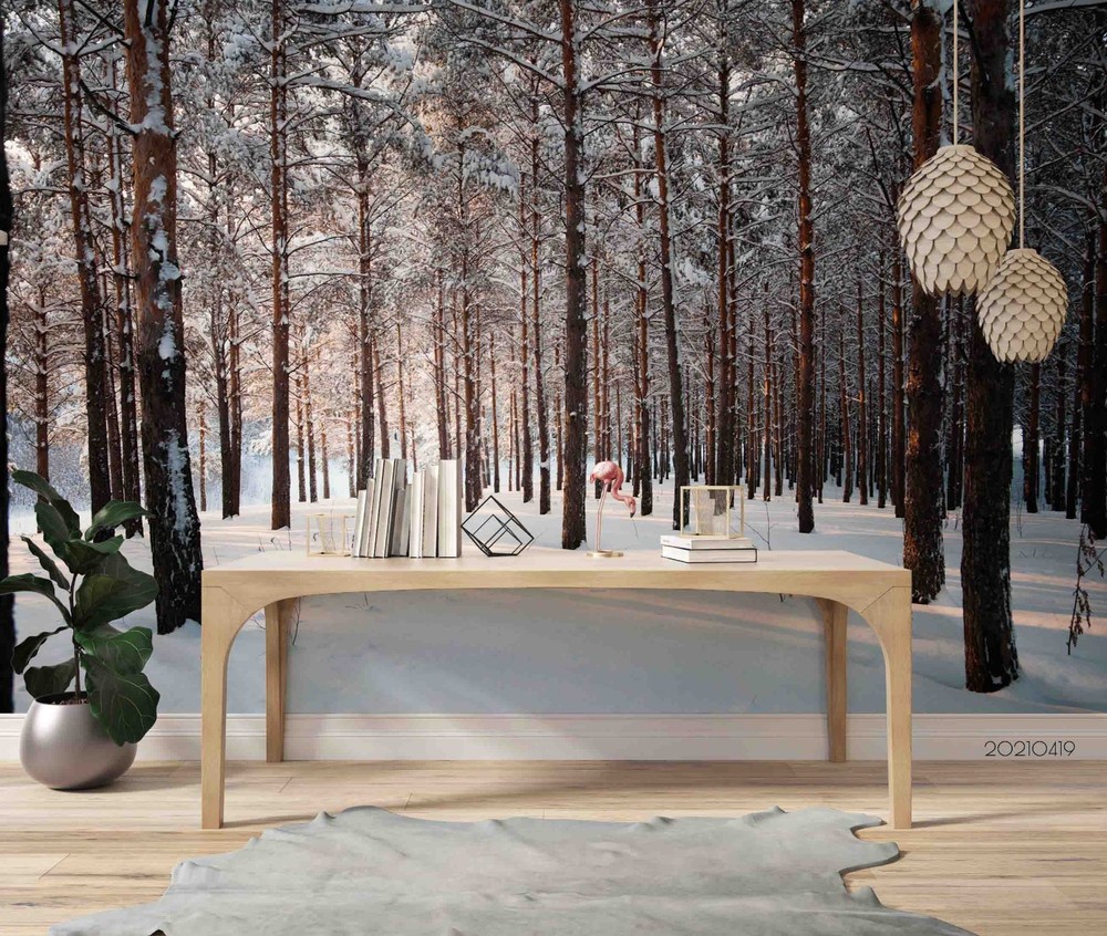 $ 14.233D Red Pine Forest Winter Landscape Wall Murals Wallpaper Murals Wall Sticker 2