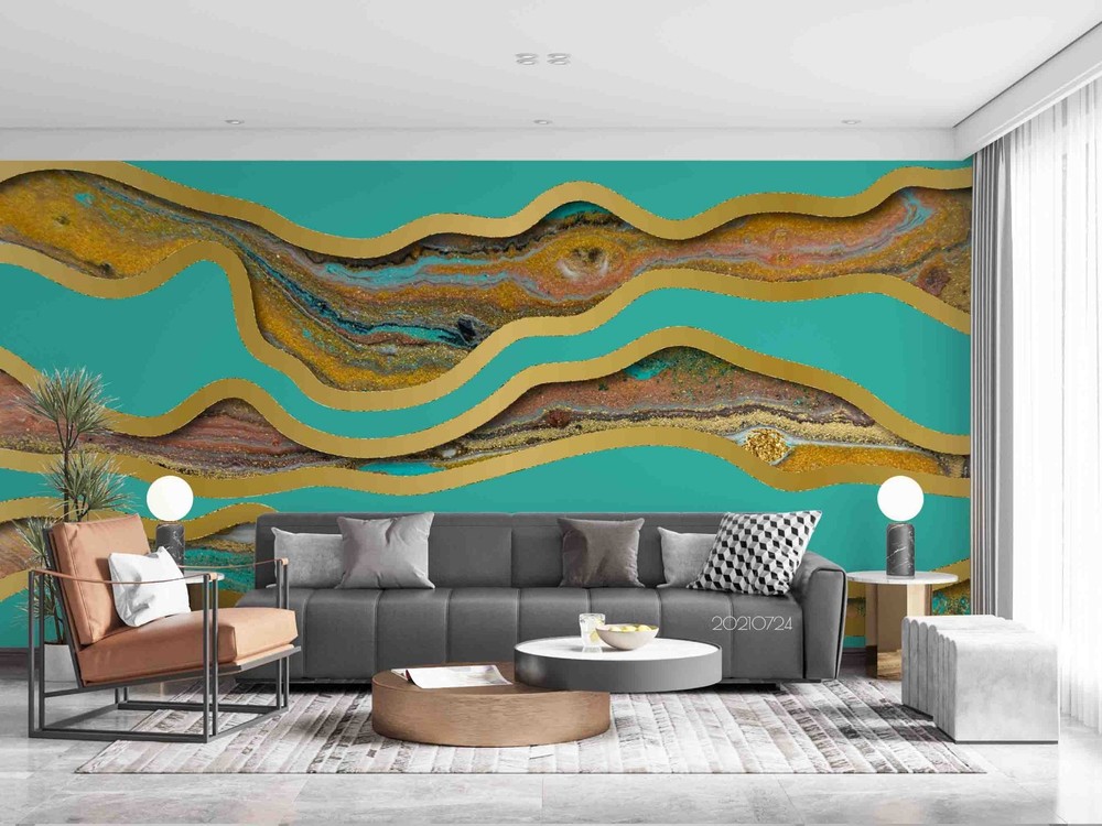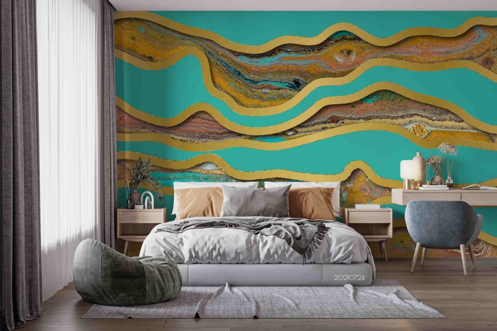 3D Blue Gold Abstract Texture Wall Murals Wallpaper Murals Wall Sticker 4