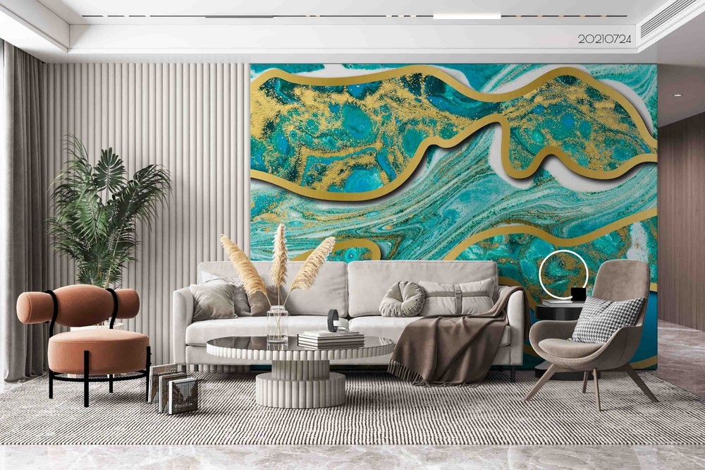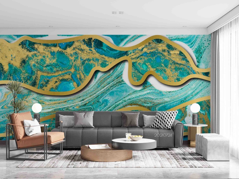 3D Green Gold Abstract Texture Wall Murals Wallpaper Murals Wall Sticker 2