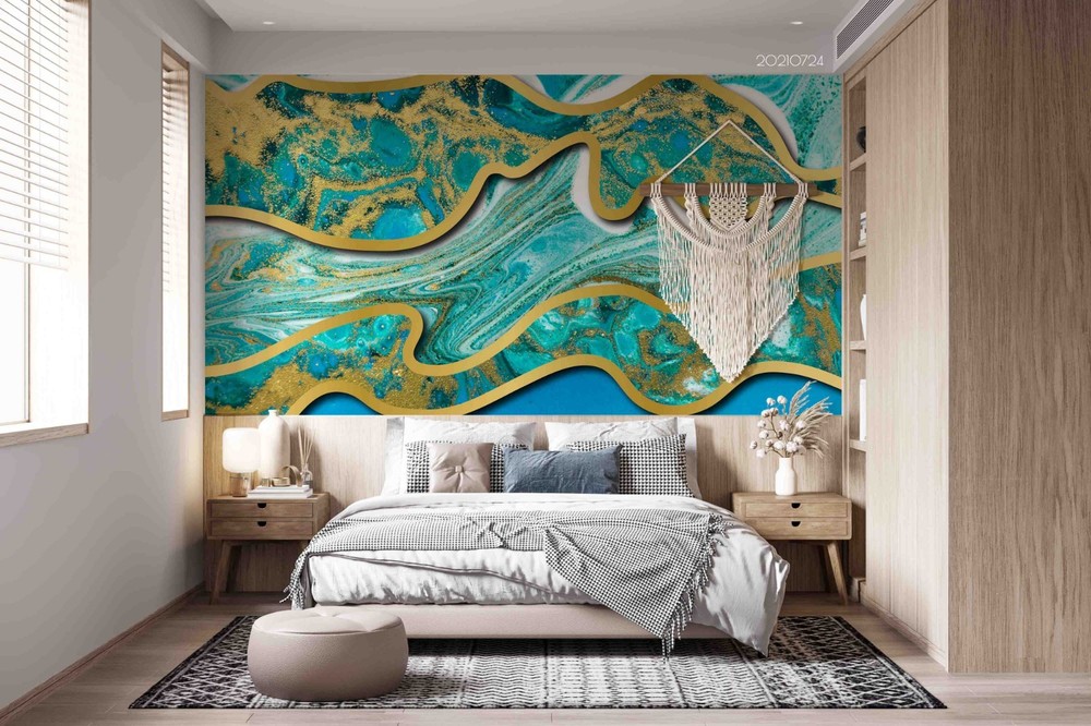 $ 14.753D Blue Gold Abstract Texture Wall Murals Wallpaper Murals Wall Sticker 4