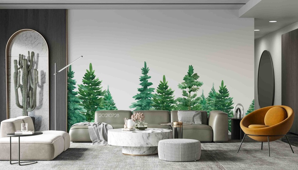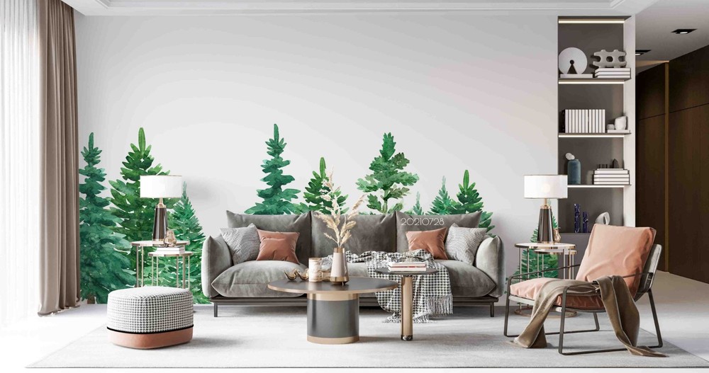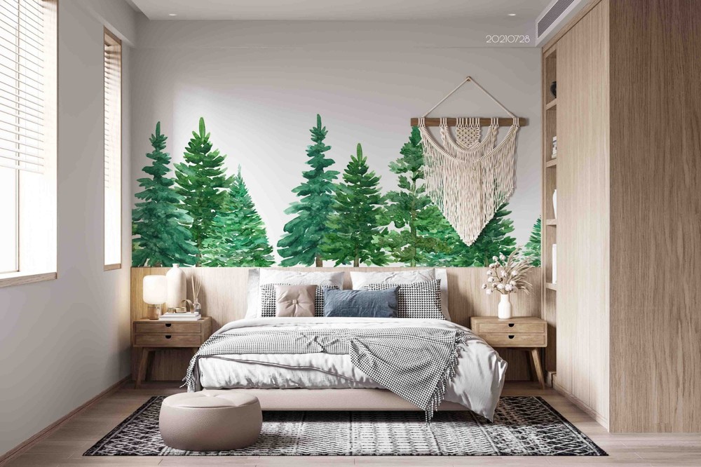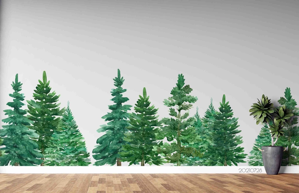 $ 14.233D Hand Drawn Pine Forest Pattern Wall Murals Wallpaper Murals Wall Sticker