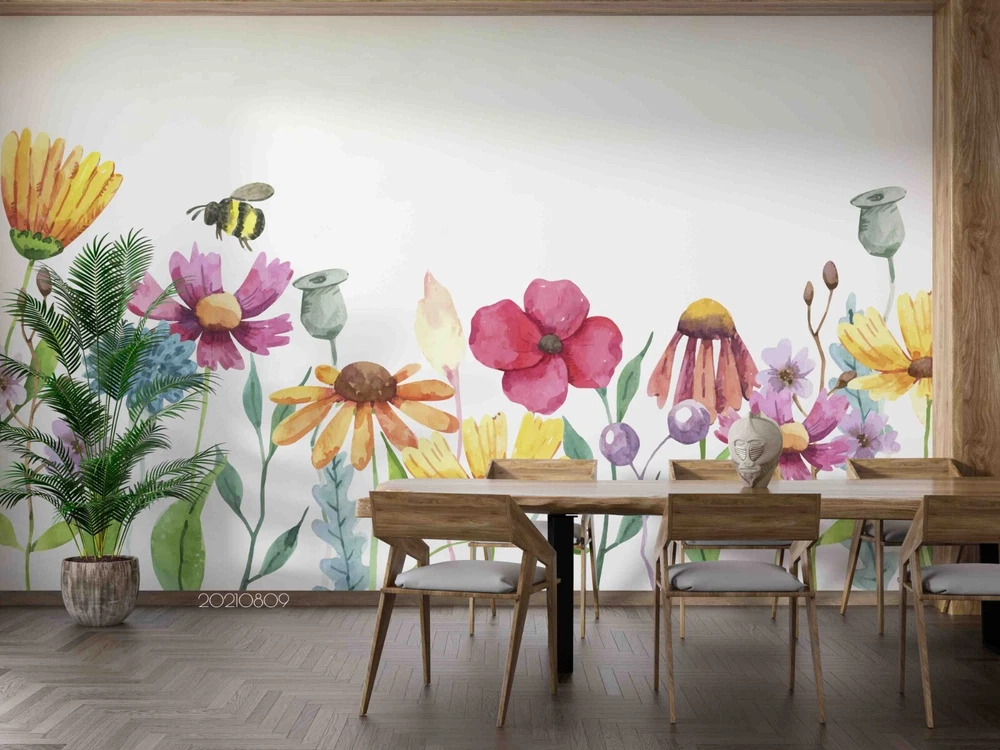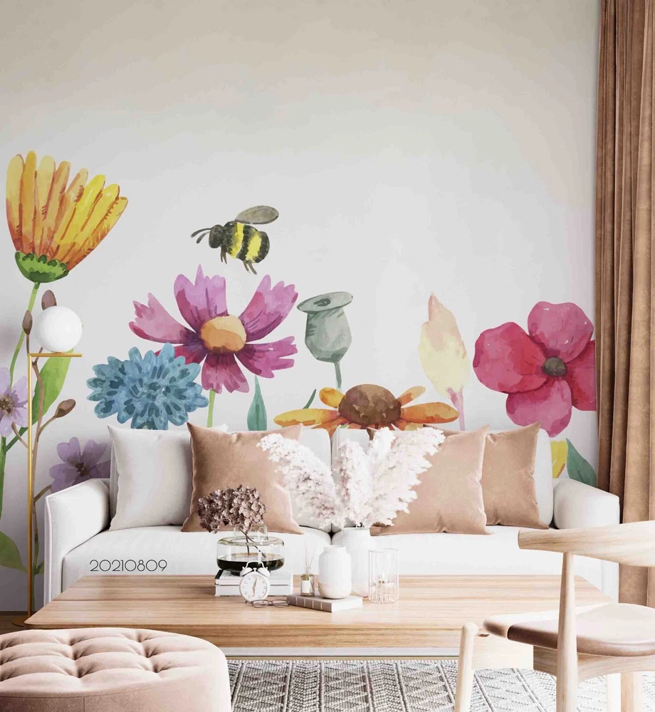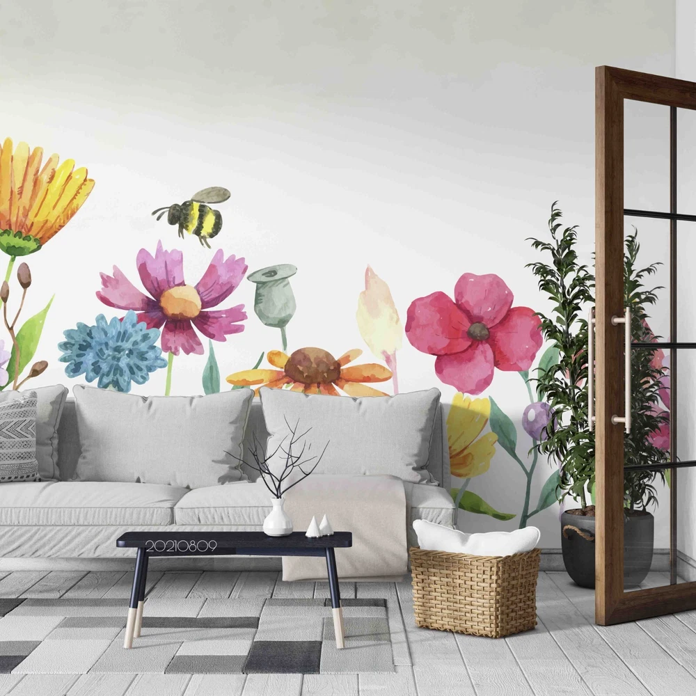 3D Hand Drawn Colorful Floral Wall Murals Wallpaper Murals Wall Sticker 97