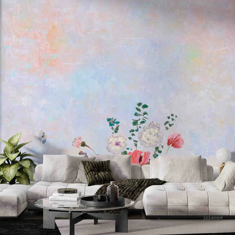 3D Hand Drawn Colorful Floral Wall Murals Wallpaper Murals Wall Sticker