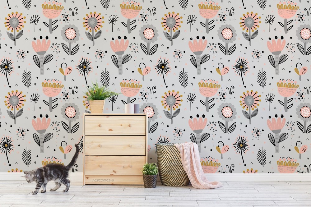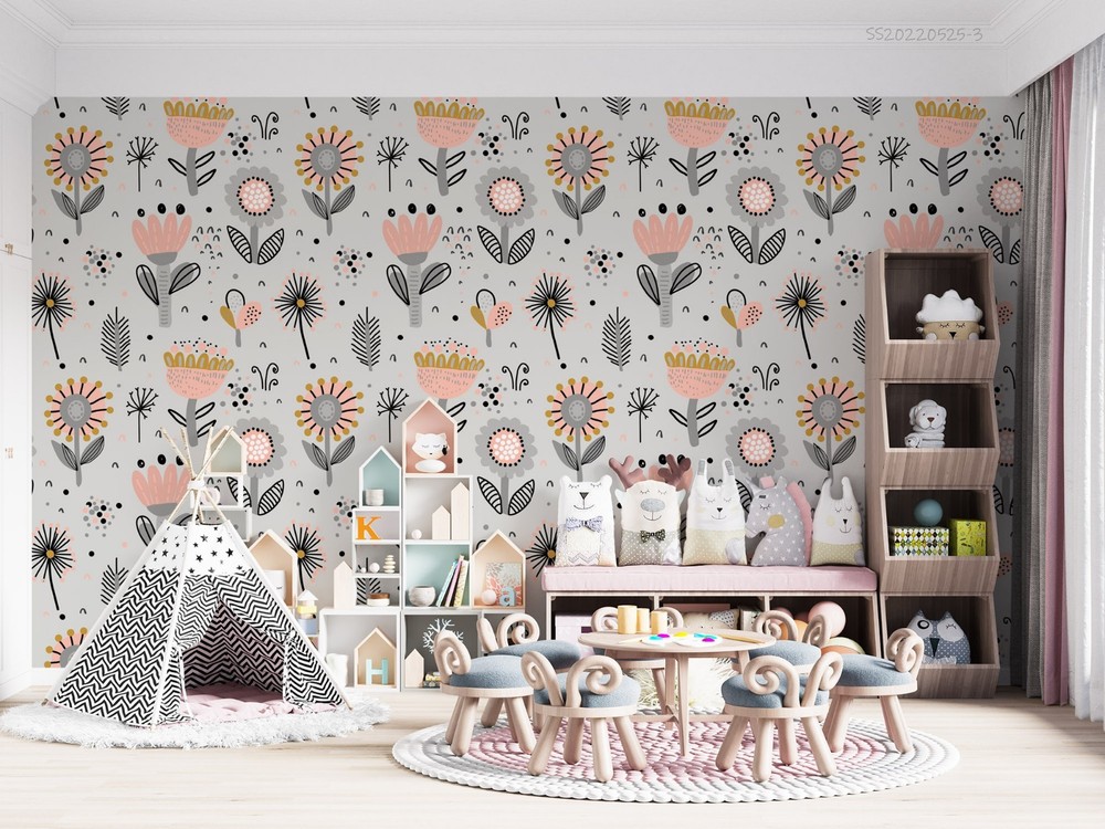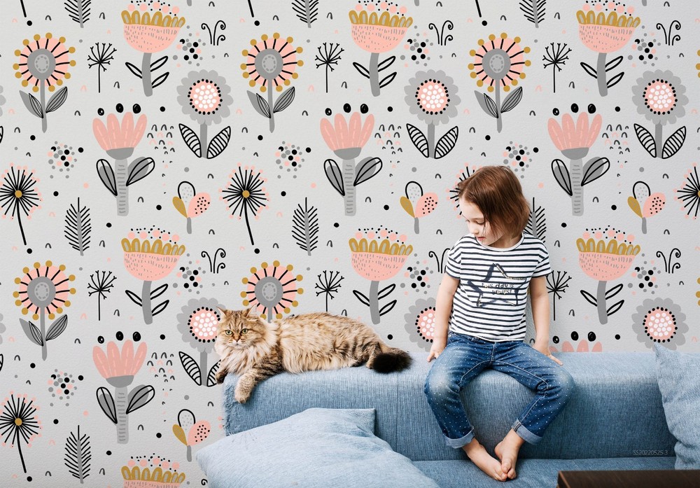 $ 14.753D Hand Drawn Flowers Pattern Wall Murals Wallpaper Murals Wall Sticker