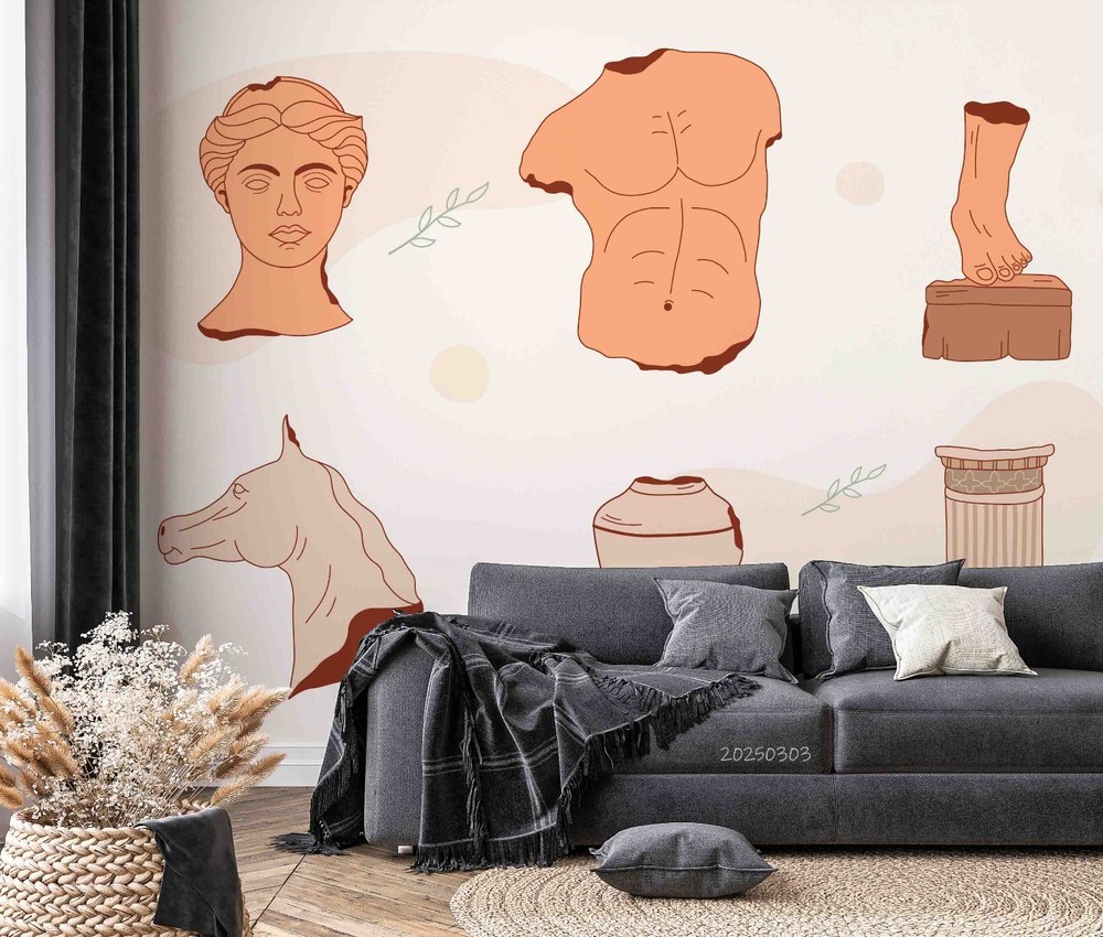3D Hand Drawn Greece Statue Wall Murals Wallpaper Murals Wall Sticker 3