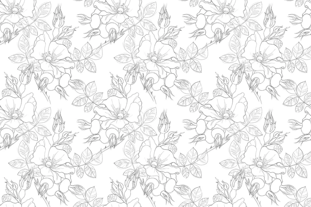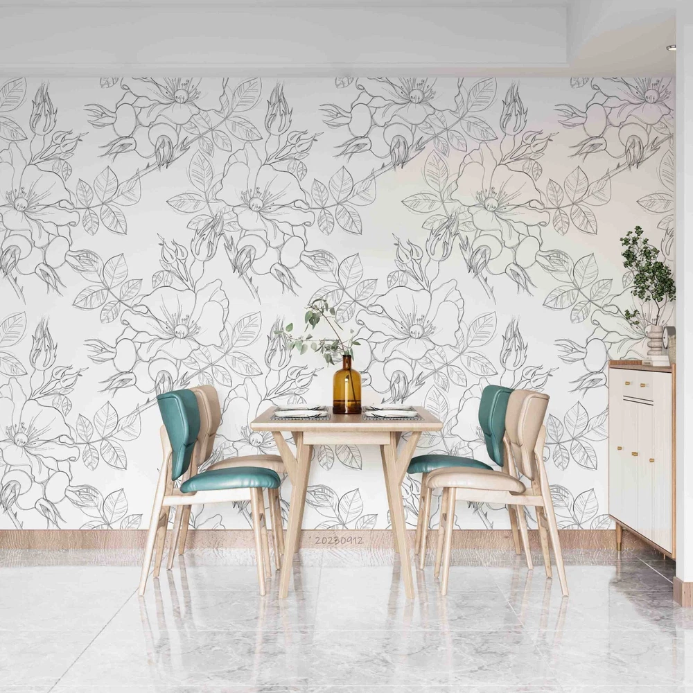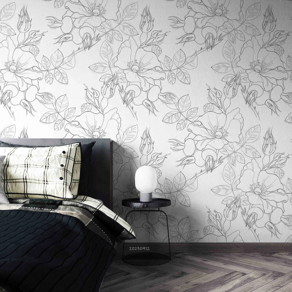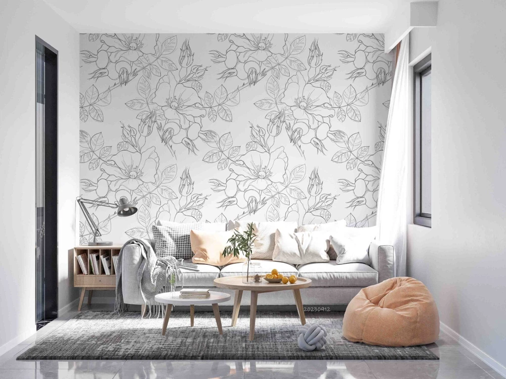 3D Hand Drawn Grey Floral Pattern Wall Murals Wallpaper Murals Wall Sticker
