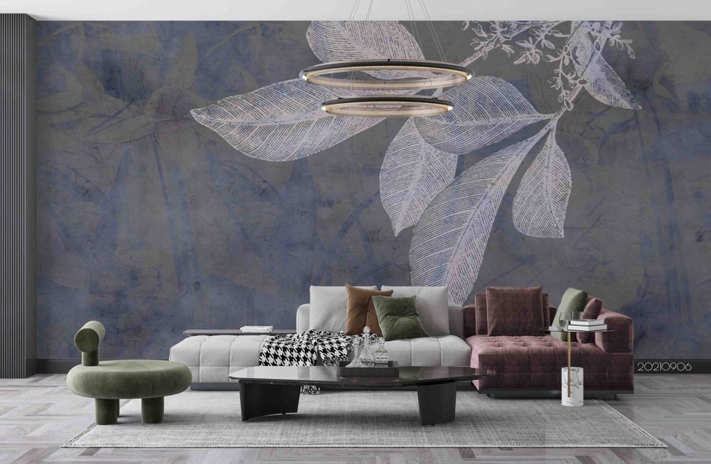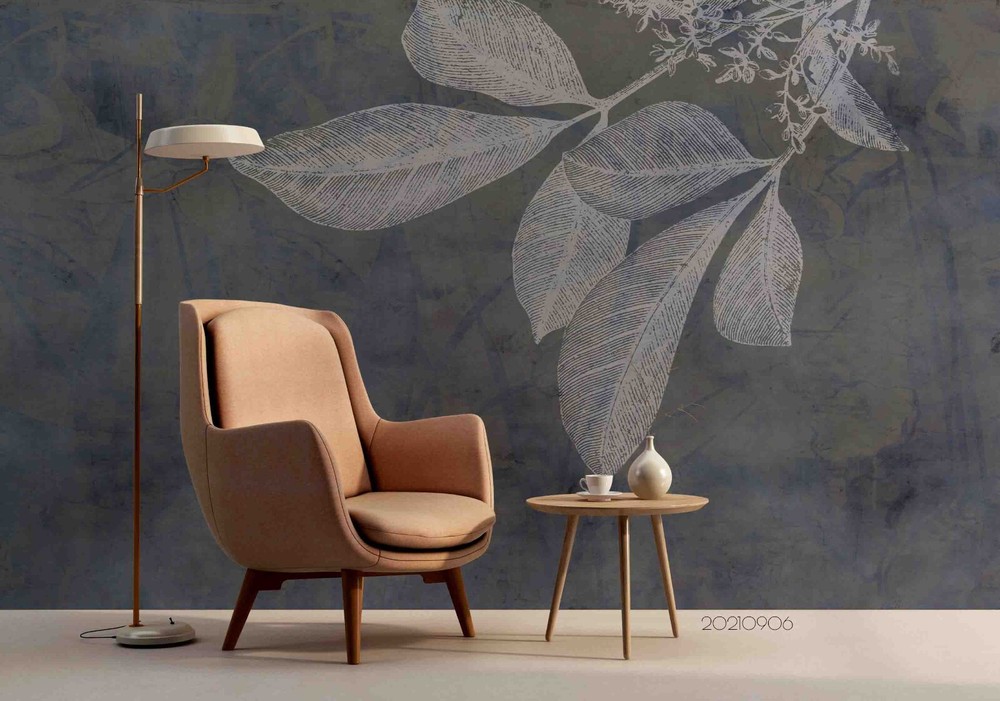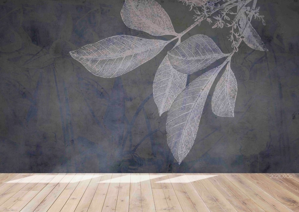 3D Hand Drawn Grey Leaf Wall Murals Wallpaper Murals Wall Sticker