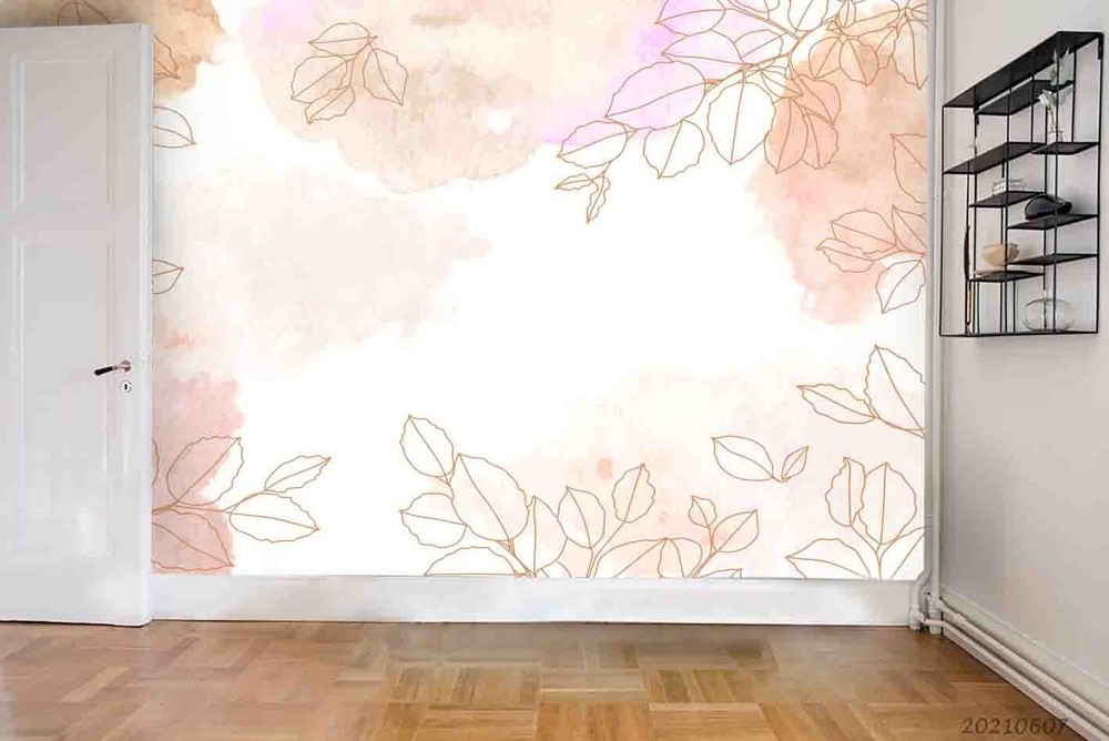 $ 15.013D Green Gold Plants Leaves Watercolor Wall Murals Wallpaper Murals Wall Sticker