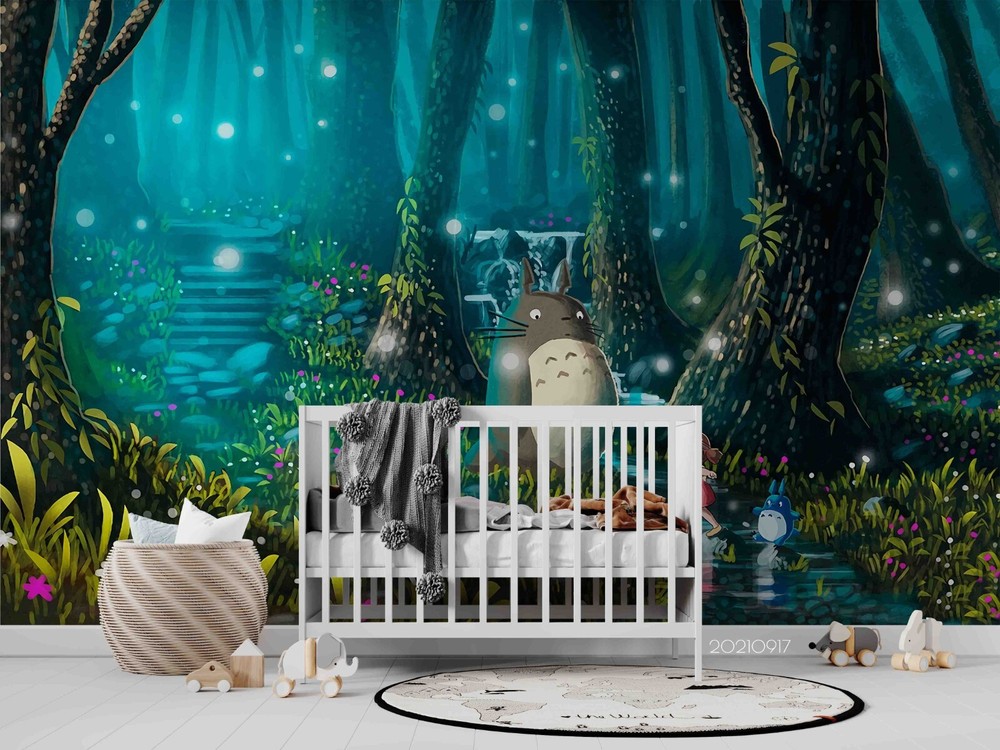 3D Blue World Map Forest Animals Wall Murals Wallpaper Murals Wall Sticker 52