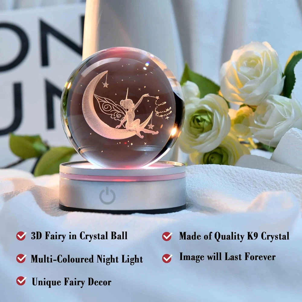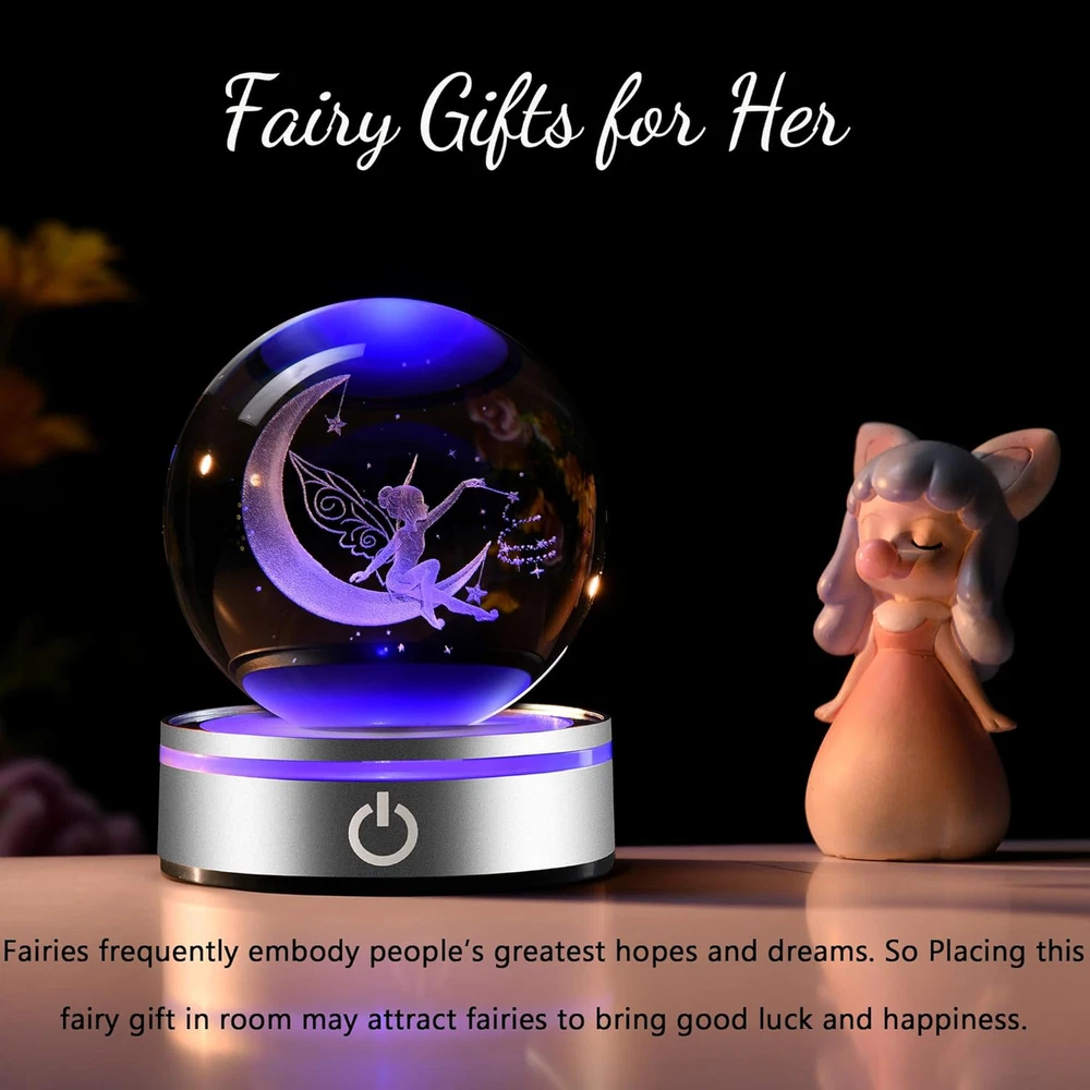 Fast Shipping Great Customer Support Satisfaction Guaranteed DESCRIPTION Shipping Shipping Shipping All domestic packages are shipped for Free (Unless other shipping method was selected during the checkout) Most items ship and arrive much sooner than the estimate delivery date. Usually within 2-3 days from payment. However, we have longer estimates to compensate for the occasional delay or supply chain breakdown. We do not accept P.O. BOXES - PLEASE PROVIDE A PHYSICAL ADDRESS Return Return Return In the event that you would like to return your purchase, we allow returns that are processed within the defined return date (the return date is to be found in the return policy/shipping and handling section) Please contact us for a return authorization and the return shipping address. Payment Payment Payment PayPal is our preferred method of payments it's the quickest, easiest and most secure way to pay for your goods or services online. PayPal offers buyer and seller protection should there be a problem. If you do not have a PayPal account, to get started and buy your first item with us is very easy. Simply click on the 'Buy It Now' button and follow the eBay checkout steps. Select PayPal as the payment method you then will be given the chance to enter your card details in to PayPal's secure checkout in order to pay for your order. Once the payment has been made, you will then be given the opportunity to make your own PayPal account to make paying for your items in the future very easy. Should there be a problem with payment please do let us know. Feedback Feedback Feedback Customer satisfaction is very important to us. If you have any problem with your order,please contact us and we will do our best to make you satisfied, please do not leave a negative feedback before we resolve your problem. We guarantee that your issue will be solved quickly. As long as you are happy with your purchase of , please leave us a positive feedback. Your feedback is very important to us it affects our search placement on eBay. We will leave a positive feedback for you in return automatically once we receive your feedback. Contact Us Contact Us Contact Us If you have any queries, please contact us via ebay. We usually respond within 24 hours on weekdays. Thank you for visiting our ebay store! 3D Fairy & Moon Crystal Ball: Diameter of Crystal is 3.15", With colorful lighting Base, made of Quality K9 Crystal, it is Pure and Sparkling, Making it Stand out in Any Room. With Advanced Laser Technology, the Engraving is Vivid and will Never Fade. Well Packed with Nice Box, Ready for a Gift to Surprise Your Loved One. The Magical Fairy Crystal : Fairies frequently embody people’s greatest hopes and dreams. So Placing this fairy gift in room may attract fairies to bring good luck and happiness. Unique Fairy Night Light:Wish Your Friends Who Love Fairies A Good Sleep At Night With This Wonderful Fairy Crystal Ball Lamp. This Gift Will Bring A Calm And Relaxing Atmosphere To Your Fairies Loving Friends’ Bedroom. The Fairy Sitting On The Moon Is Engraved In The Clear Crystal Sphere, Creating A Magical Look, As If A Fairy Lives Inside. It Will Be A Beautiful Fairy Gift As A Little Company At Night. Decorative Ball Decor: This Enchanting Fairy Lamp is Not Just a Beautiful Decoration, But Also a Practical Gift Idea for Various Occasions. Its Mesmerizing Glow Adds Warmth and Tranquility to any Room, Creating a Soothing Atmosphere That Helps You Unwind After a Long Day and Enter the Enchanted World of Fairies. Gifts for Fairy Lovers: A Fairy Gift Means To Bring Good Luck And Happiness. Fairies Are Magical Creatures Who Resemble Humen. They Are A Source Of Inspiration For The Imagination. From Children To Adults Of All Ages, Fairies Inspire Them With Magic, Adventure, As Well As A Quest With Twists And Turns. Fairies Are Believed To Have Magical Power, So That They May Grant Your Wishes. This Fairy Crystal Ball is a Perfect Gift for Fairy Lovers. 3D Laser Engraved Fairy Crystal Ball Night Light Gift for Girls and Fairy Lovers Click here to see description Fast Shipping Great Customer Support Satisfaction Guaranteed DESCRIPTION Shipping All domestic packages are shipped for Free (Unless other shipping method was selected during the checkout) We ship within two business days of payment, usually sooner Standard FREE shipping takes between 3-5 business days Expedited shipping takes between 2-3 business days Overnight shipping takes between 1-2 business days We do not accept P.O. BOXES - PLEASE PROVIDE A PHYSICAL ADDRESS We Ship Globally using ebay's GSP, the item is sent to a logistic center in KY and shipped from there to the rest of the world. International customers are responsible for all duties and taxes Contact your local authority for questions related to the amount of duties or taxes you will be responsible for Return In the event that you would like to return your purchase, we allow returns that are processed within the defined return date (the return date is to be found in the return policy/shipping and handling section) Please contact us for a return authorization and the return shipping address. Please contact us for a Return Merchandise Authorization (RMA) number. We advise you to use a reputable carrier service when returning your goods. Please pack all returns appropriately. We ship globally Via eBay's global shipping program (GSP). Thus we don't cover returns for items shipped globally. Buyers returning such items will be refunded ONLY for the item's cost and not for the shipping. please check the Voltage information and make sure it matches the one in your country. In case it's not stated in the description, do ask us. Payment PayPal is our preferred method of payments it's the quickest, easiest and most secure way to pay for your goods or services online. PayPal offers buyer and seller protection should there be a problem. If you do not have a PayPal account, to get started and buy your first item with us is very 
