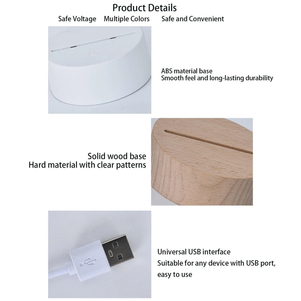 3D Led Light Base Night Light Base Holder Christmas Light Lamp Base with awesome Bullet Points: Novel Design: Experience a peaceful and calming ambiance with our 3D LED light base, which provides 16 color changing night modes and 4 intensity settings to adjust according to your needs. Protect children's eyes with the soft light that gradually brightens, dims, turns on and off with a simple touch. Outstanding Performance: Delightful LED light base crafted with high-quality ABS, ensuring exceptional strength, reliability, and wear-resistant that you won't find anywhere else. Easy for Users: Control the Night Light Base with ease, thanks to the touch button and remote control. This handy device can be connected to a computer or adapter using the 5V USB cable or run on 3 AA batteries (not included), making it a simple and convenient to use. Versatile Lighting Option: This 3D LED light base can be used in various places, such as bedrooms, dining rooms, living rooms, workplaces, and shops. It is an ideal home decoration and a creative decorative light base for any occasion. Beautiful Present: Elevate your party decorations with this Led Base For Acrylic. Create stunning visual effects, as you surprise your friends and family with more joy and fun to homes. Perfect for bedroom accessories, photo props and more. Enhance your acrylic artworks and protect children's eyes with our LED base. Made with high-strength materials, the base is and long-lasting. The touch button control allows for easy adjustment of lighting. Perfect for shops and a great holiday or birthday gift. Get yours today! Specifications: Product size: 100*40mm/3.93*1.57inches Product weight: about 225g Voltage: less than/equate to 36V Product power: 4W mode: touch/remote control Power supply: USB/3 AA batteries Warm reminder: 1. Due to the color temperature of the display, camera, ambient light and photography skills, there may be a slight color difference in the pictures of some products, and the color is subject to the actual object! 2. Due to different manual measurements, please allow slight size differences. List: LED light base *1 (without acrylic plate, without battery) USB*1 Remote control *1 Instructions *1 1.You can make a Credit payment via Paypal.Paypal will let you use MasterCard,Visa to pay. 2.Payment should be completed within 5 days after auction closed, or unpaid dispute will be filed for an closing auction.An unpaid case will be filled after 4 days. ● We strive for 100% customer satisfaction ! ● Positive Feedback is very important to us. ● We hope that you contact us immediately BEFORE you give us neutral or negative feedback, so that we can satisfactorily address your concerns. ● We promise to offer the lowest price and high quality produce. Dear buyers : ● Welcome to my store ! ● Your satisfaction is our top goal,we appreciate your patronizing. ● If you have any questions, please contact us before leave negative or neutral feedback, we will try our best to solve the issue to your satisfaction, thanks ! ● If you are satisfied with our service, please rate the details of the transaction (Detailed Seller Ratings) on eBay. ● Please always talk to us via ebay Message. ● We appreciate your business and look forward to growing our e-Bay sales with satisfied customers.