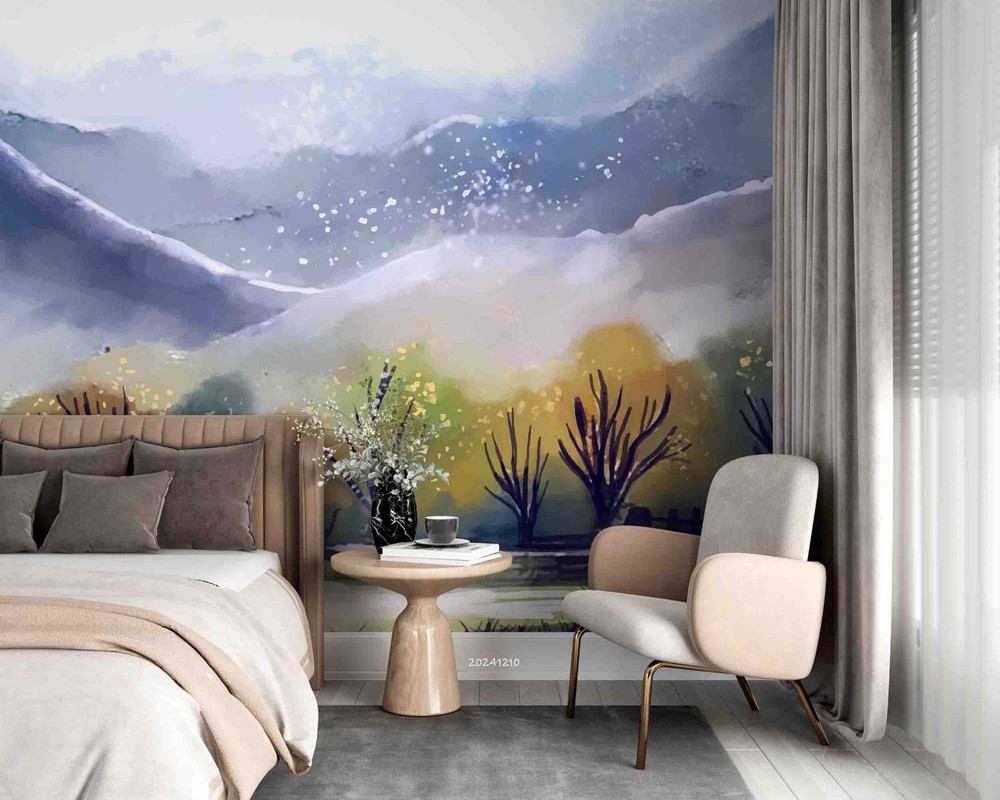 3D Landscape Watercolor Wall Murals Wallpaper Murals Wall Sticker
