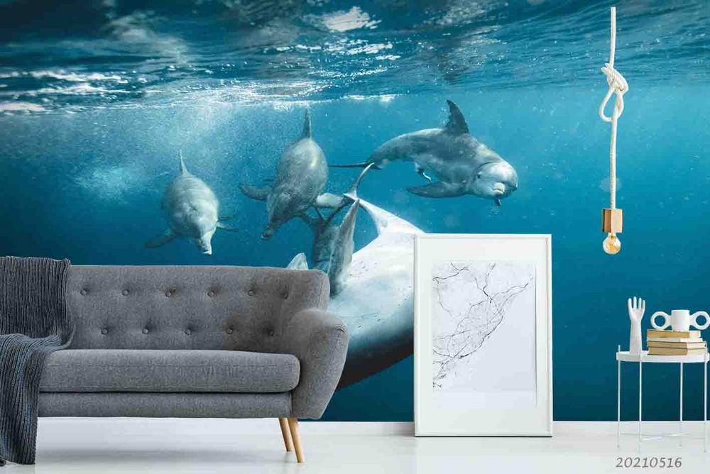 $ 14.143D Sea Dolphin Landscape Wall Murals Wallpaper Murals Wall Sticker