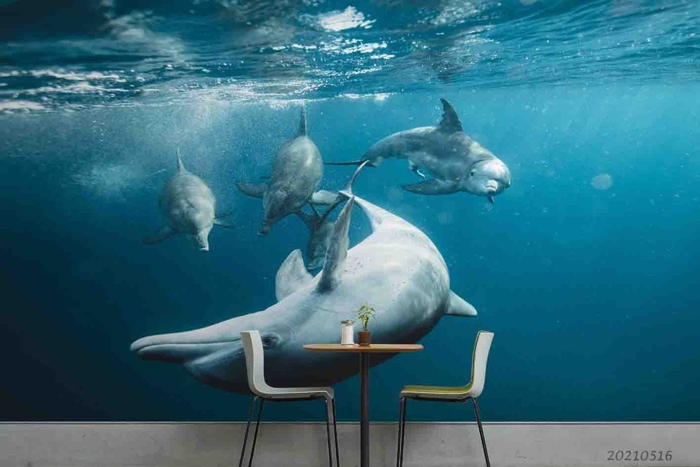 3D Ocean Dolphin Close-up Wall Murals Wallpaper Murals Wall Sticker 2