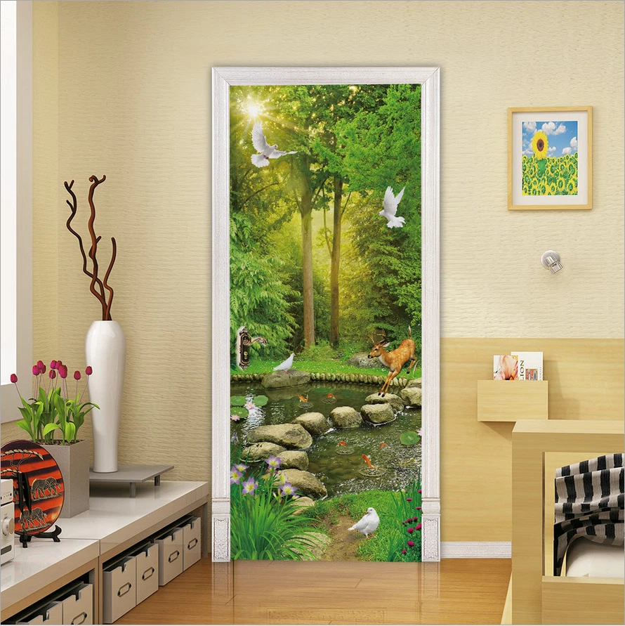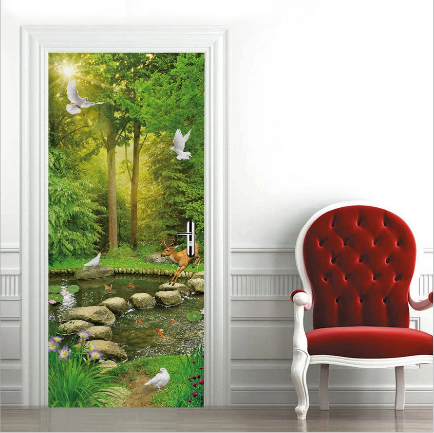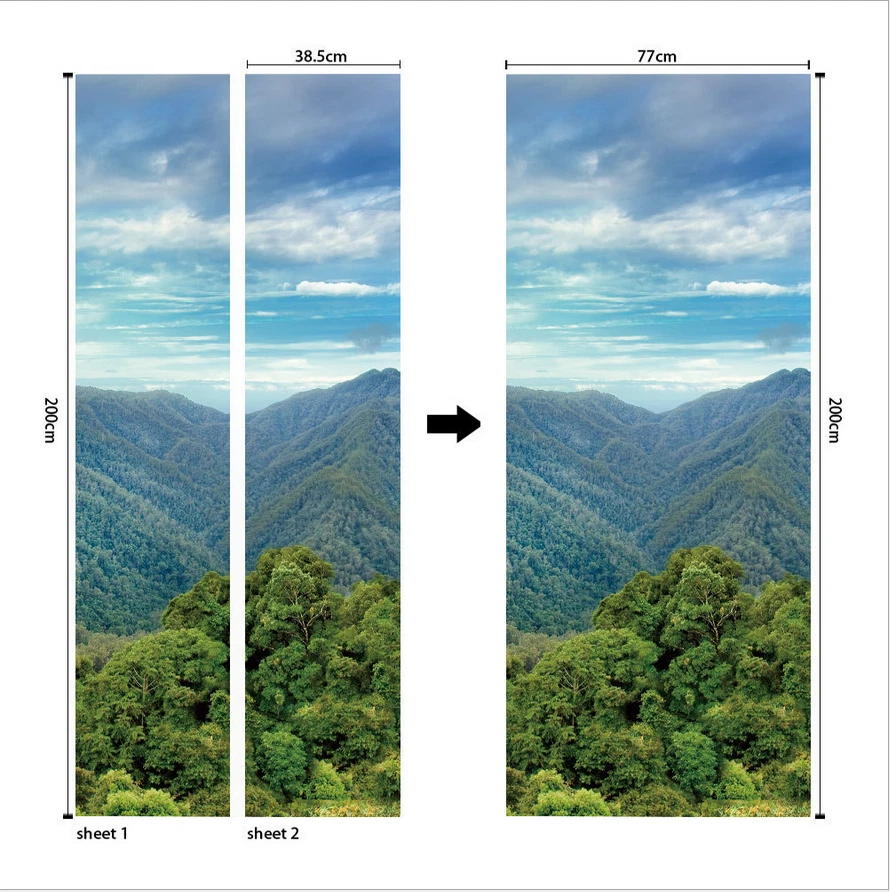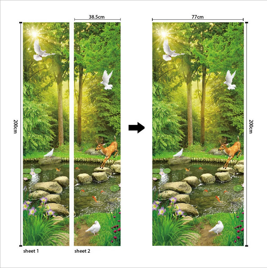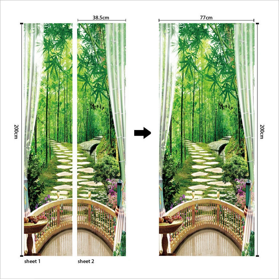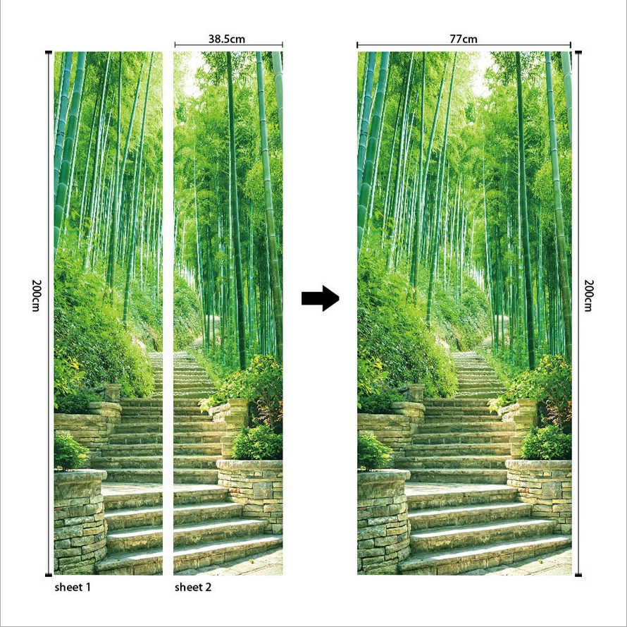 PVC Abstract Statue Green Forest Wall Decals Mural 3D Door Sticker Home Decor Feature: Made by eco-friendly PVC material, brand new item and high quality. It can add a distinctive visual effect to your home. Waterproof, durable and practical door wall sticker. Easily applied by peeling the protective film backing off, sticker murals are easy to stick. They easily peel off without leaving a mark on your door and can easily used again and again. Specification: Material: Eco-friendly PVC Color: As pictures shown Finish Size On Wall: 30.31x78.74'' Layout Size: 15.15x78.74'' x 2pieces Product Weight: 500g Package Included: 2Pcs Door Wall Sticker Attention: The product you received contains 2 parts. This item is a DIY product. It should be put together by yourself. The product is only suitable for smooth media, such as glass, metal, dust-free walls and so on. Notes: Applies on walls and doors. Please allow 1-5mm difference due to manual measurement. Thanks for your understanding.