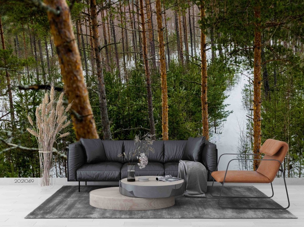 $ 14.233D Red Pine Forest Winter Landscape Wall Murals Wallpaper Murals Wall Sticker 2