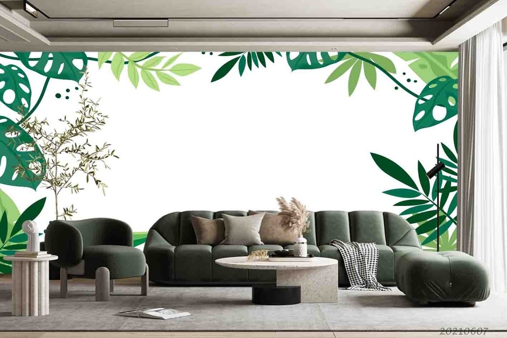 3D Plants Leaves Watercolor Wall Murals Wallpaper Murals Wall Sticker 11