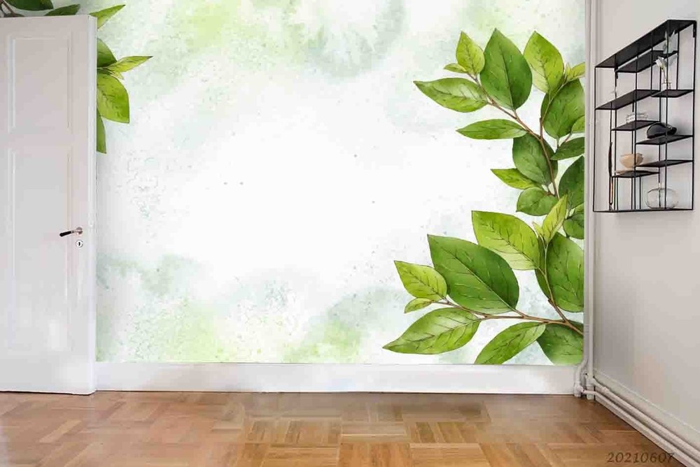 3D Hand Drawn Leaves Watercolor Wall Murals Wallpaper Murals Wall Sticker