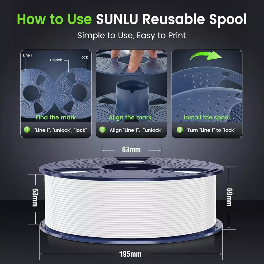 SUNLU 100% Neatly Wound PLA+ Filament The SUNLU R&D team has developed cutting-edge technology to produce 100% neatly wound PLA+ filament, an achievement unmatched by other brands. This advanced winding process ensures no knots or tangles, greatly enhancing printing efficiency and reducing downtime. Advantages of SUNLU PLA+ 3D Filament SUNLU PLA+ is 10 times stronger than standard PLA filament, offering improved durability and brighter colors. It is designed for hassle-free printing, with no clogs, bubbles, tangling, warping, or stringing. Its superior layer adhesion ensures better print quality, making it easy to use for both beginners and professionals alike. 1.75mm Diameter with High Dimensional Accuracy Engineered with precise dimensional accuracy of +/- 0.02mm, SUNLU filament is highly compatible with most 1.75mm FDM 3D printers. Its consistent diameter ensures smooth and reliable feeding for more accurate prints. Spool Specifications Diameter: 8.00 inches Width: 2.50 inches Hub Hole Diameter: 2.20 inches The spool's dimensions are optimized to fit most 3D printers, allowing for easy integration into your setup. Recommended Print Settings Nozzle/Extrusion Temperature: 210°C - 235°C (410°F - 455°F) Bed/Platform Temperature: 55°C - 65°C (131°F - 149°F) These settings help achieve optimal printing performance and quality. Wide Compatibility SUNLU 3D filament is not only compatible with all SUNLU 3D printing products, including FDM 3D printers and filament dryers, but also works seamlessly with a wide range of other FDM 3D printers, such as the popular Ender 3 and Ender 3V2 models. Product Description SUNLU PLA+ 3D Printer Filament - A high-strength, easy-to-use filament, perfect for beginners and professionals seeking high-quality, reliable prints. The video showcases the product in use. The video guides you through product setup. The video compares multiple products. The video shows the product being unpacked.