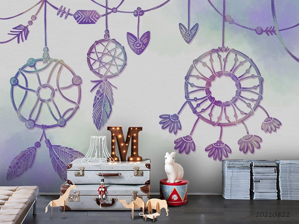 3D Purple Dreamcatcher Wall Murals Wallpaper Murals Wall Sticker