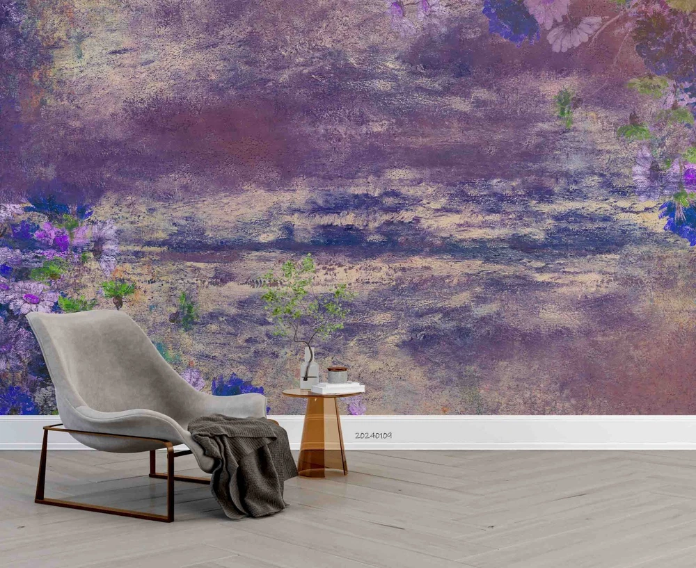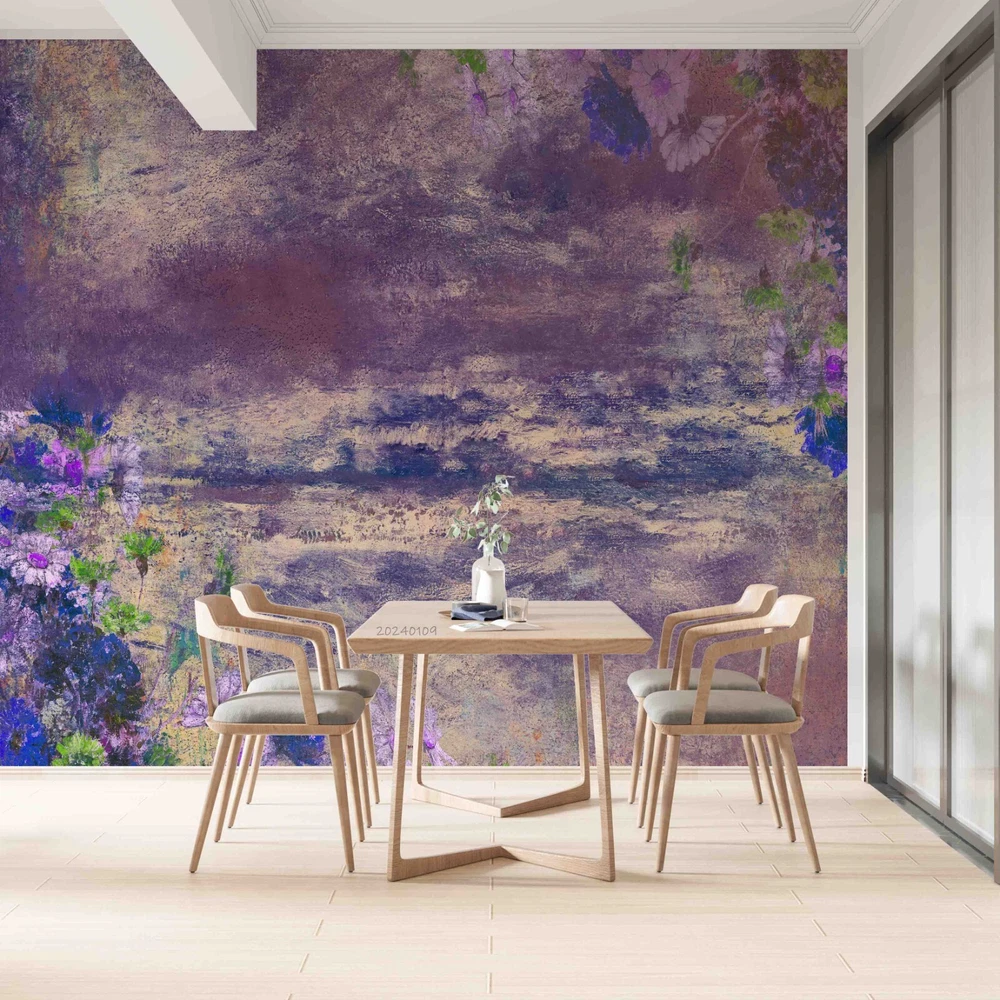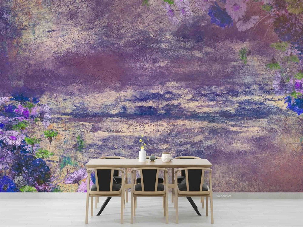 3D Purple Floral Oil Painting Wall Murals Wallpaper Murals Wall Sticker