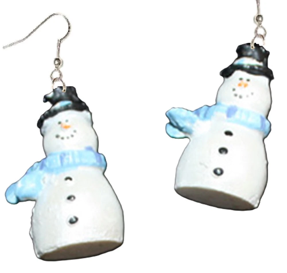 3-d Shimmer SNOWMAN Funky EARRINGS - Style G - Pearlescent Dimensional Christmas Winter Holiday Charm Novelty Costume Jewelry - BIG, detailed dimensional painted resin charm, approx 1.25-inch (3.13cm) tall x 0.75-inch (1.88cm) diameter, on nickel-free surgical steel French hook-style earwires. Great gift for Frosty fans! Add a touch of whimsical charm to your winter wardrobe with these Team-Zebra Funky Earrings & Novelty Jewelry's Snowman Earrings. Perfect for the holiday season, these earrings feature a cute and 3-dimensional snowman design made of pearlescent white resin. The charms are reversible , making them a great choice for display from both sides. These drop.dangle style earrings are proudly made in the USA and have nickel-free surgical steel hooks, making them perfect for those with sensitive ears . These earrings are perfect for any occasion, whether it's for Christmas, winter, holiday or even for a birthday. They are proudly handcrafted in the USA. Available in Clip-On version, if pierced style is not desired. MPN: TZ-101941 ---------------------------------------------------------------------------------------------------- ***All of our funky costume jewelry is CUSTOM MADE-TO-ORDER, so requires extended time, up to TWO-WEEKs before SHIPPED after payment is received*** Please allow TWO-THREE WEEKS Total for USPS First Class to USA locations. ---------------------------------------------------------------------------------------------------- Combined Discounts: Buy *$ 50.00 or more & First Class WorldWide shipping is FREE !!! ----------------------------------------------------------------------------------------------------