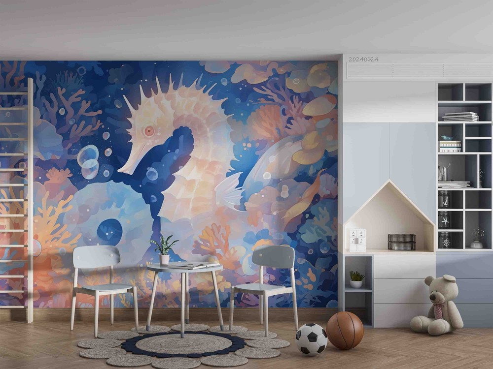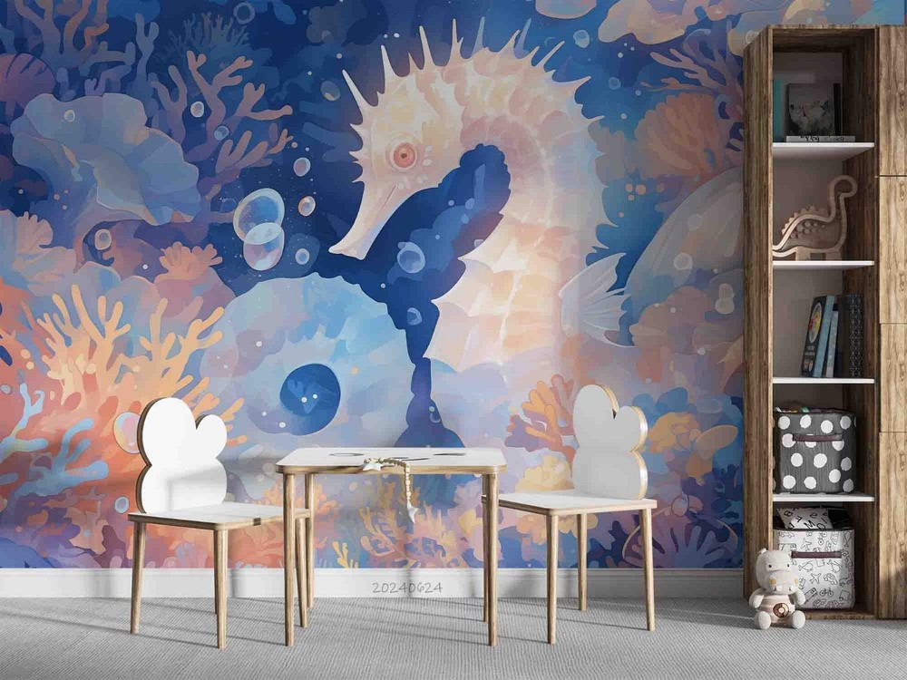 3D Coral Shell Fish Pattern Wall Murals Wallpaper Murals Wall Sticker