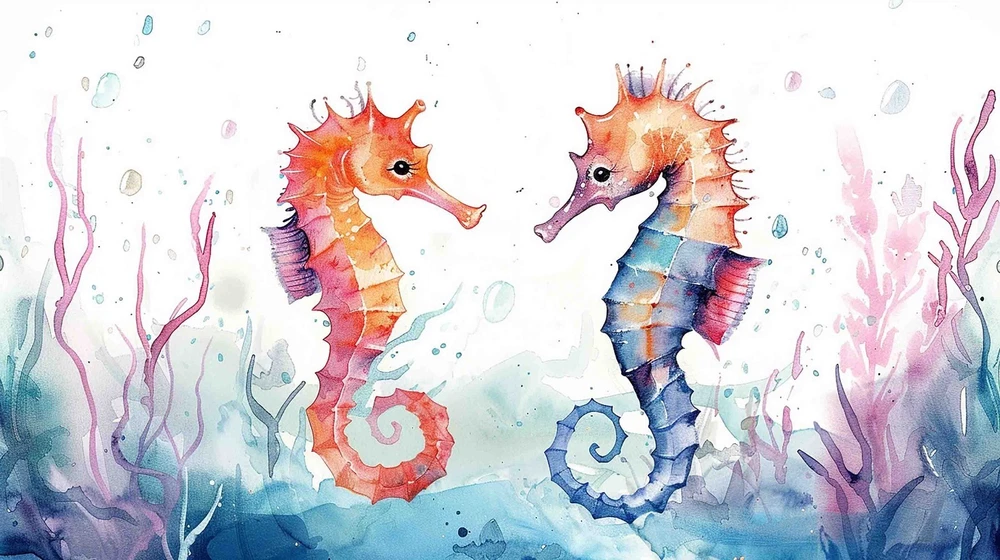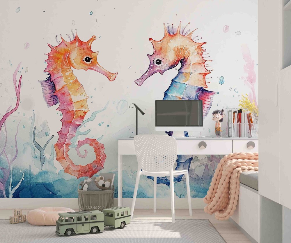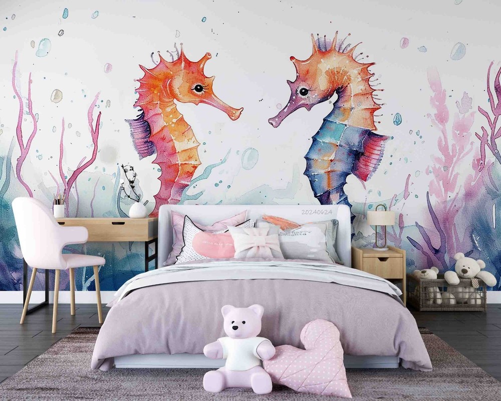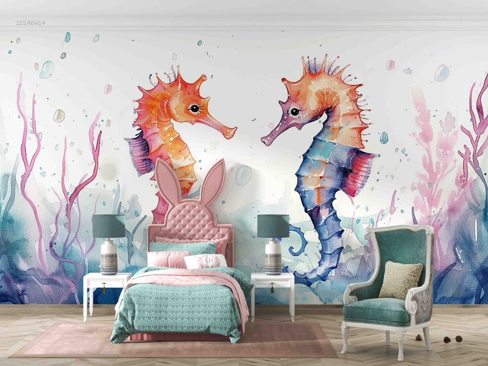 3D Seahorse Coral Watercolor Wall Murals Wallpaper Murals Wall Sticker 5